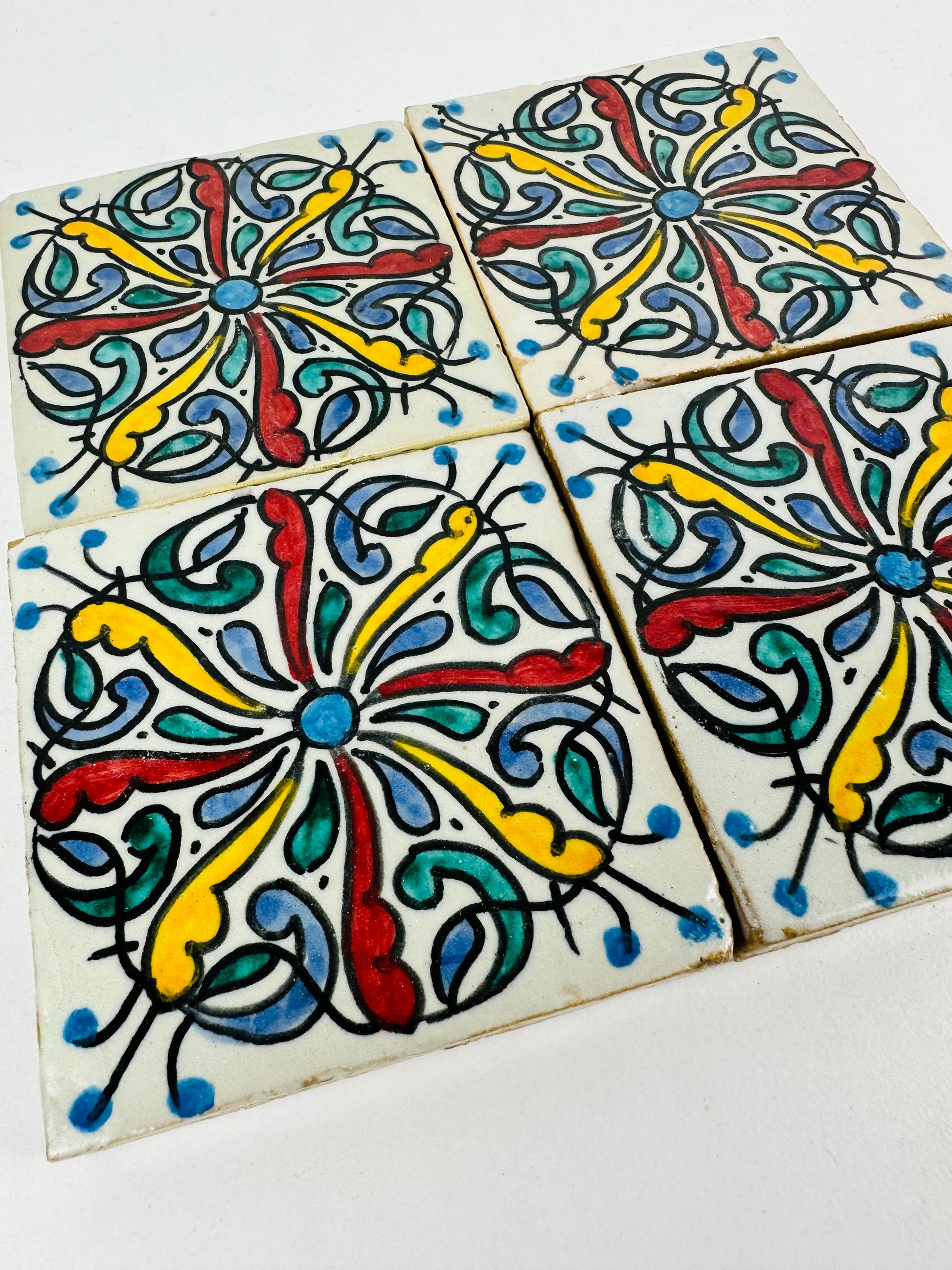 The Andalusian Radiance Moroccan Zellige Tiles bring the vibrancy of Moroccan-Andalusian art to life with an intricate floral-inspired motif. The delicate yet bold interwoven patterns of red, blue, yellow, and green create a sense of movement and harmony, reminiscent of the elegant tiles found in the palaces of Alhambra. The symmetrical design adds a refined and sophisticated touch to any space, enhancing walls, floors, and decorative installations with timeless beauty.