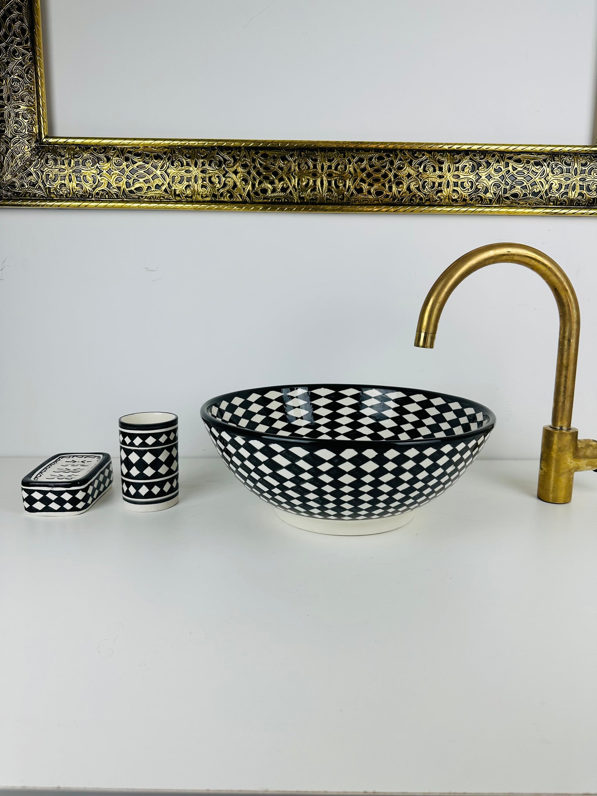 Monochromatic Round checkerboard sink 100% handmade and hand painted