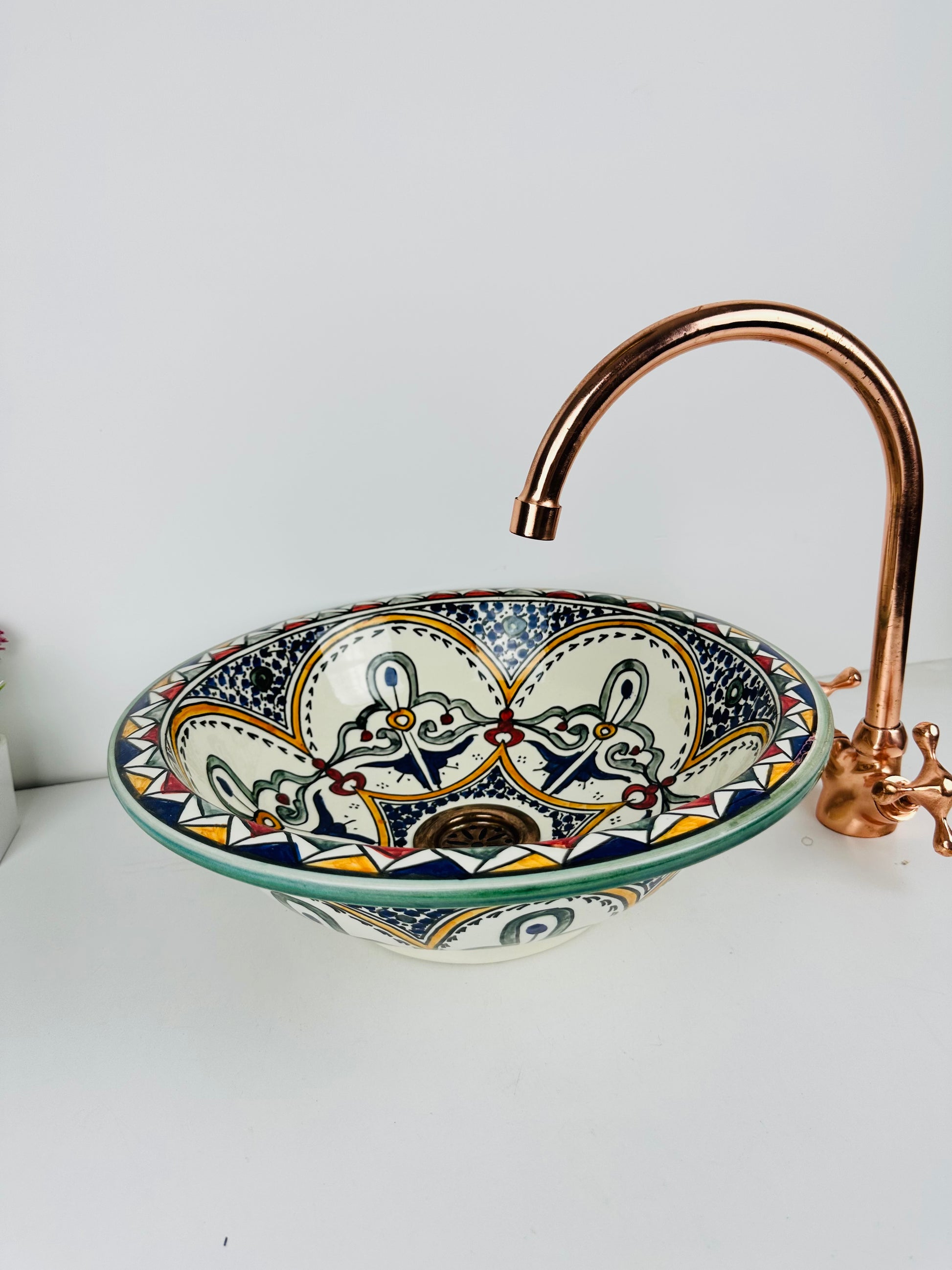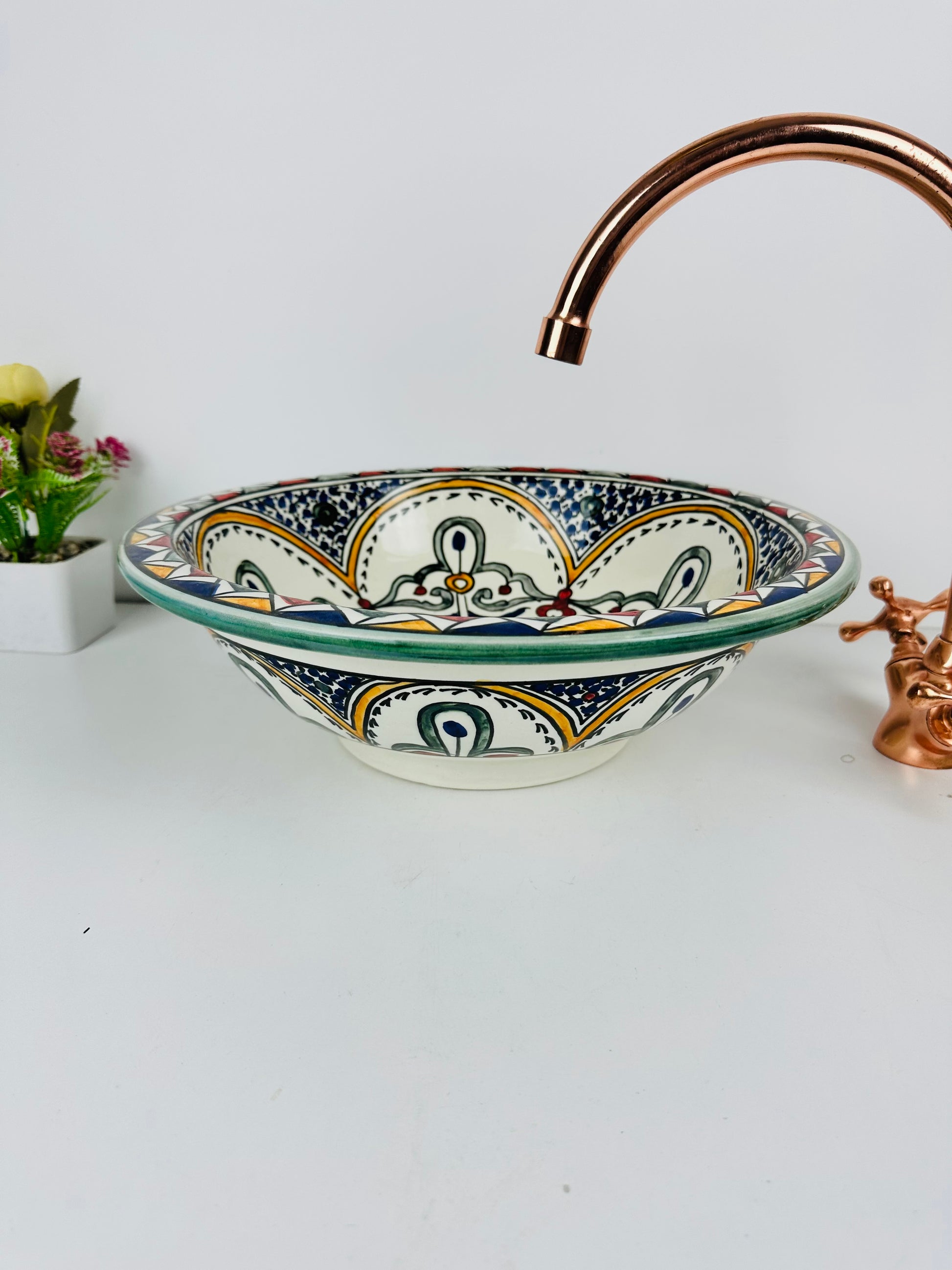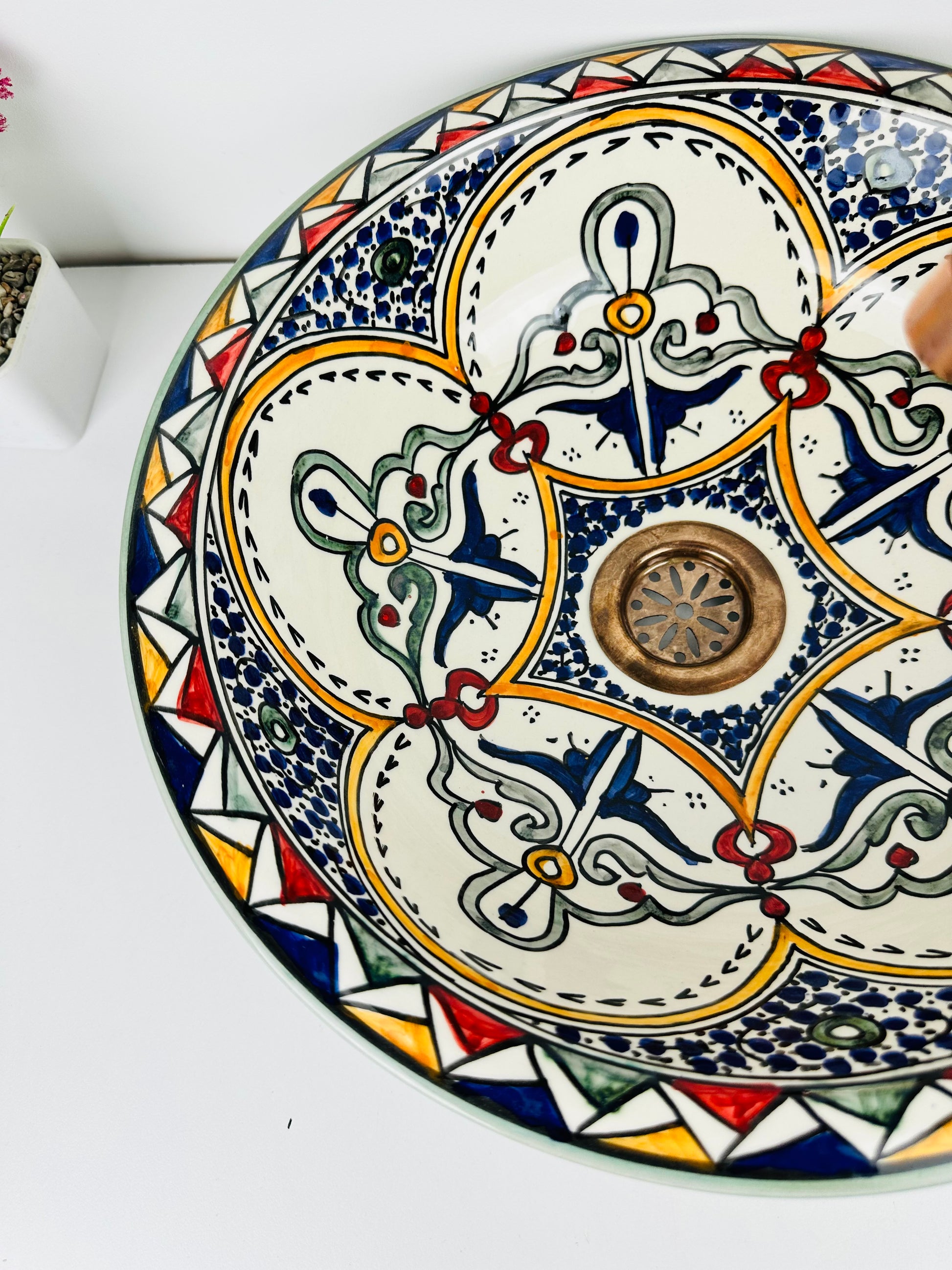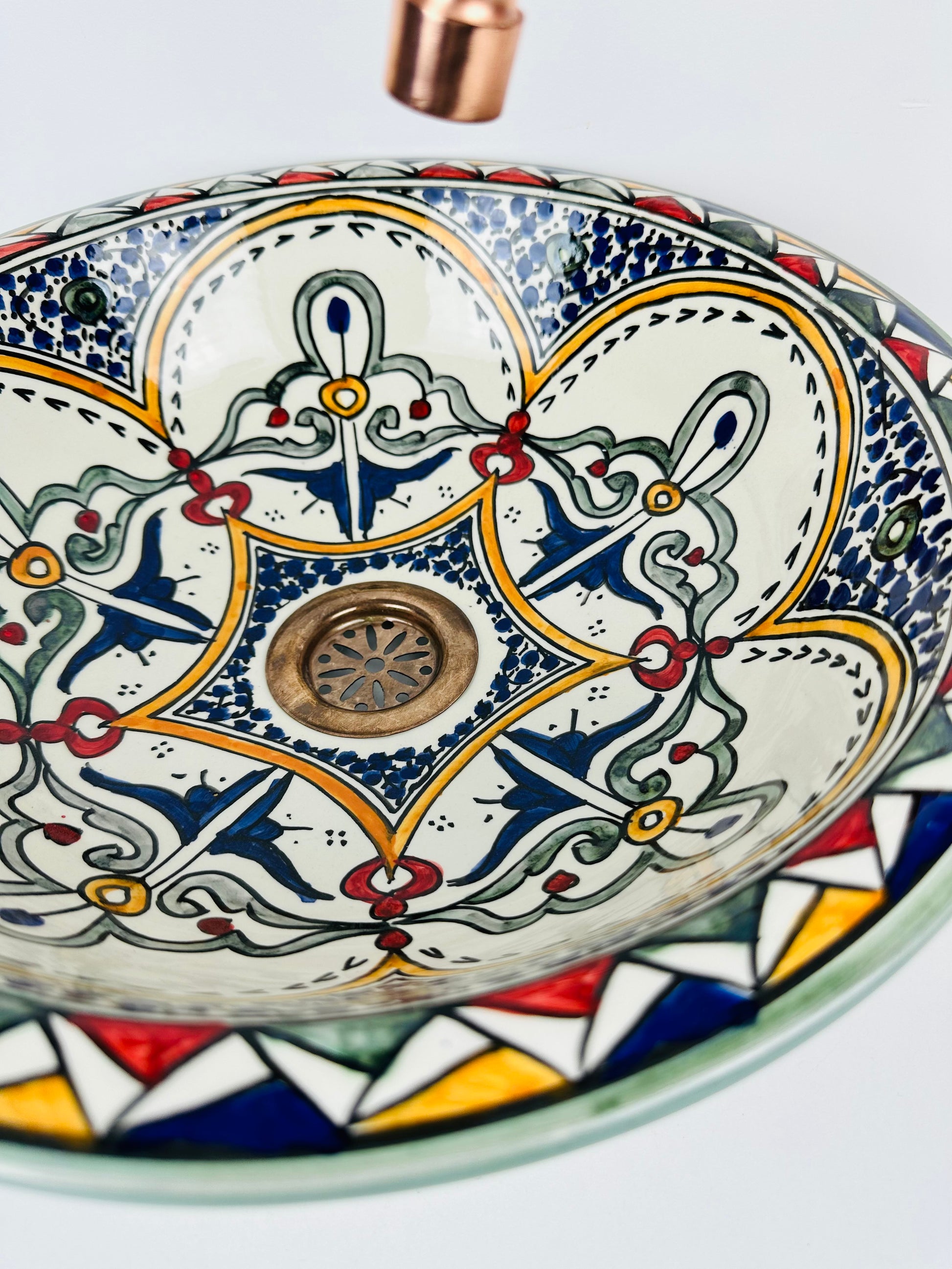 Moroccan Charm: Handcrafted Ceramic Sink with Intricate Moroccan-Inspired Design