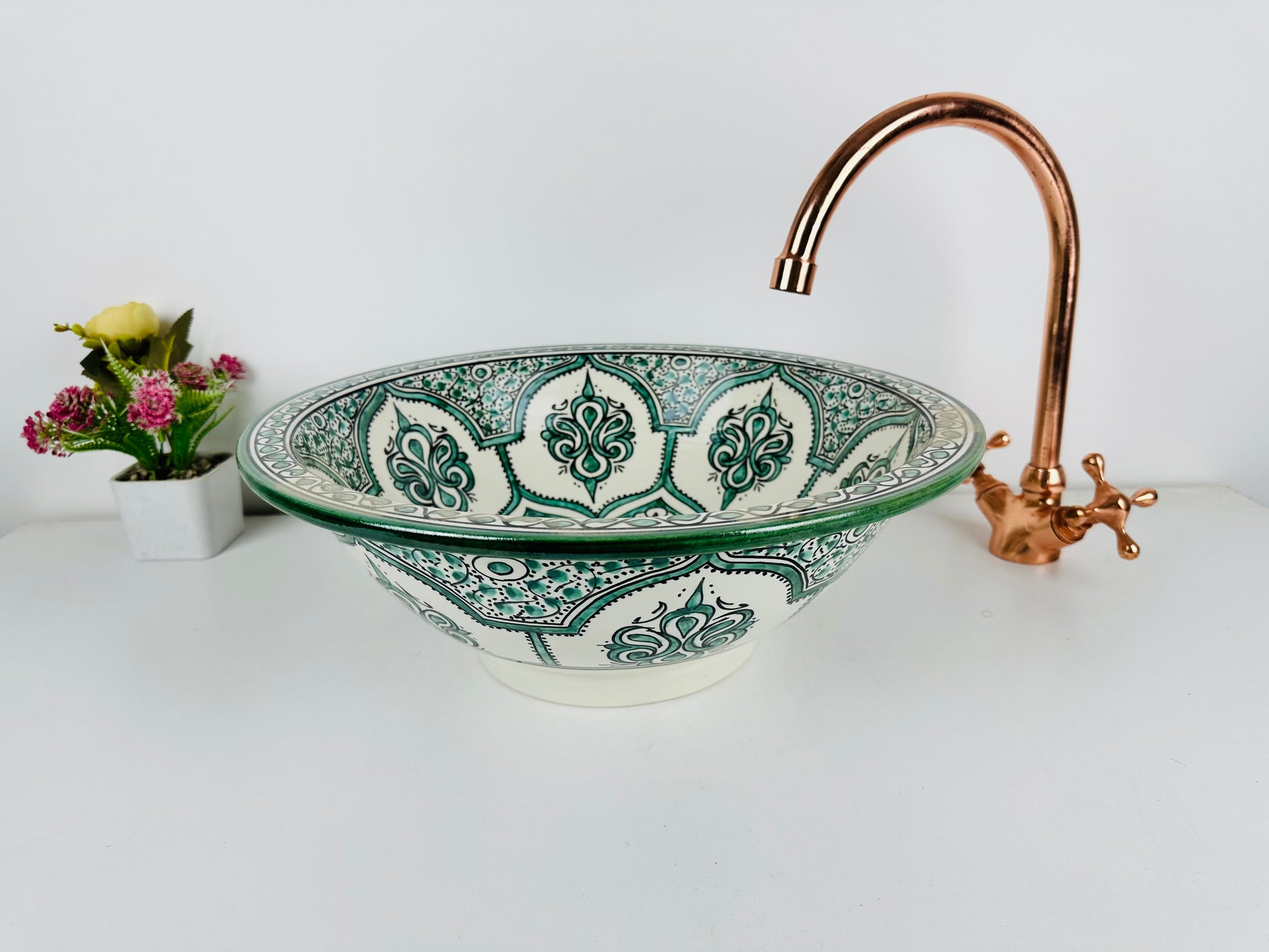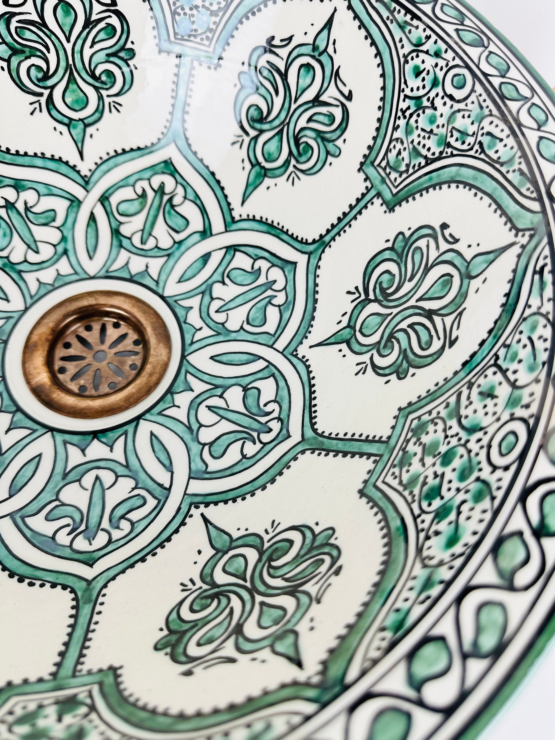 Moroccan Meadow: Handcrafted Ceramic Sink with Traditional Green Moroccan Design