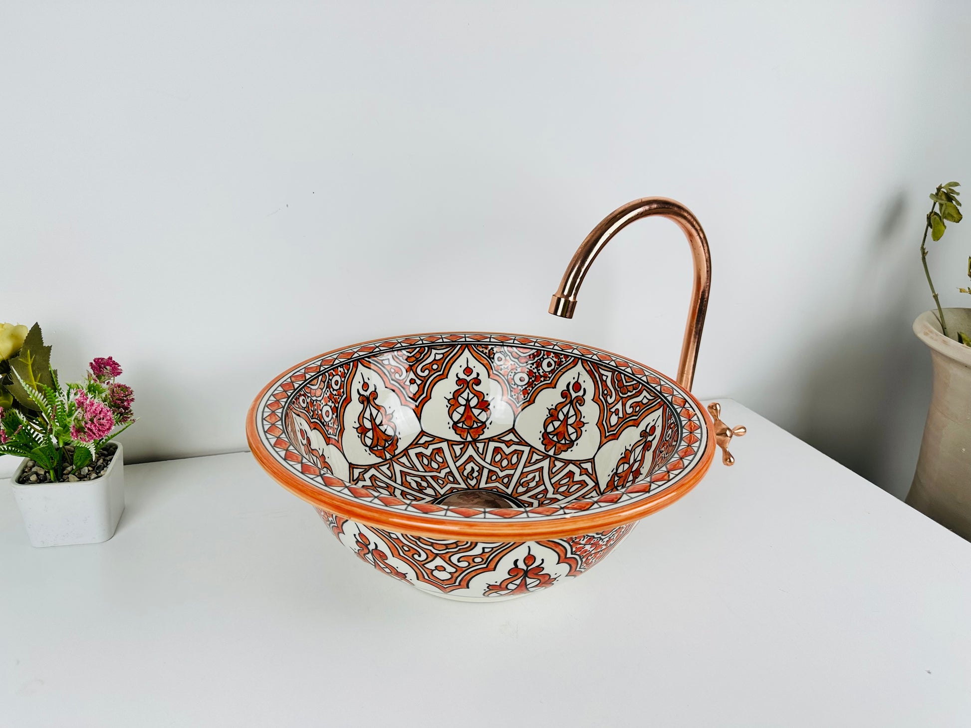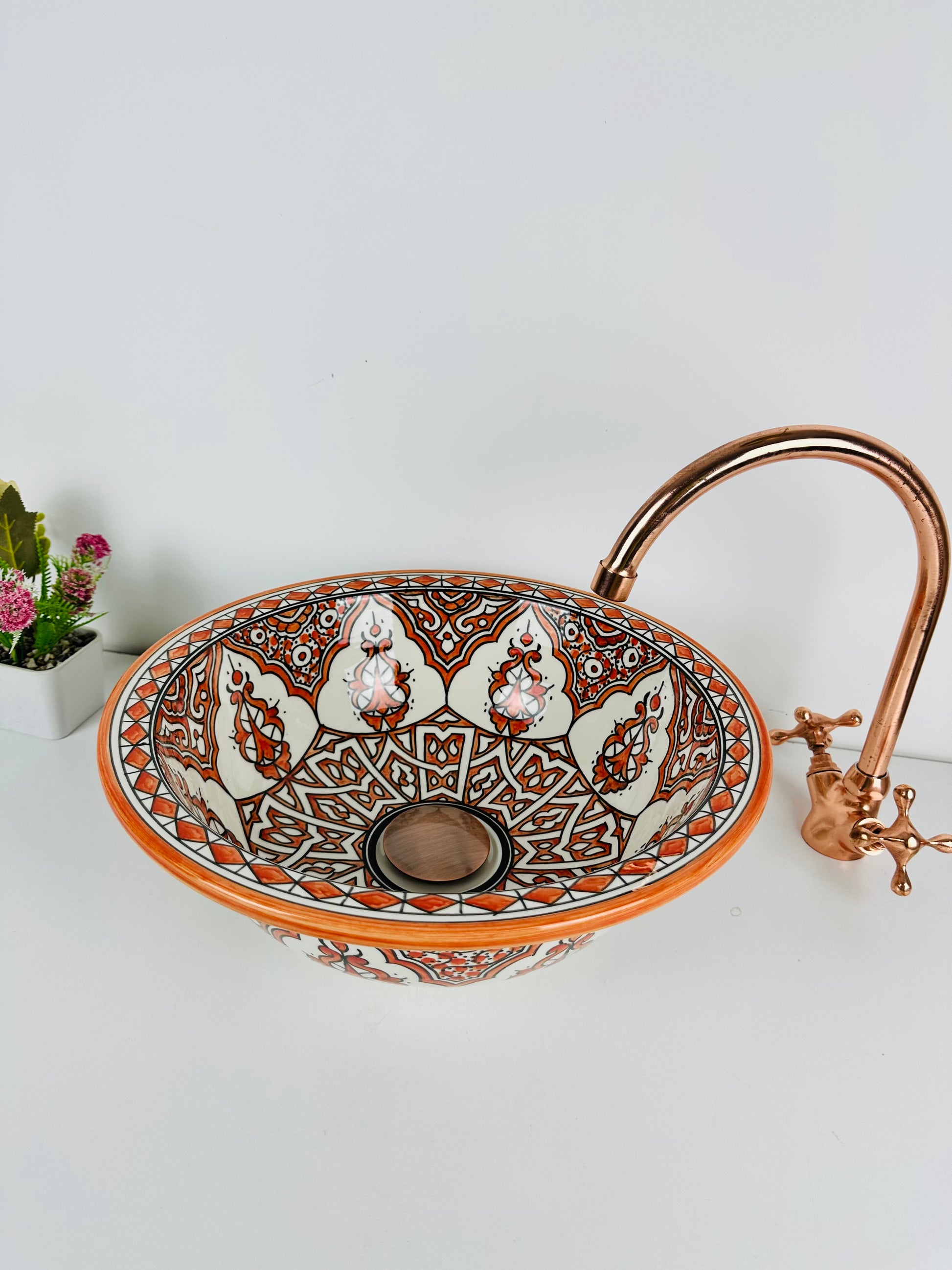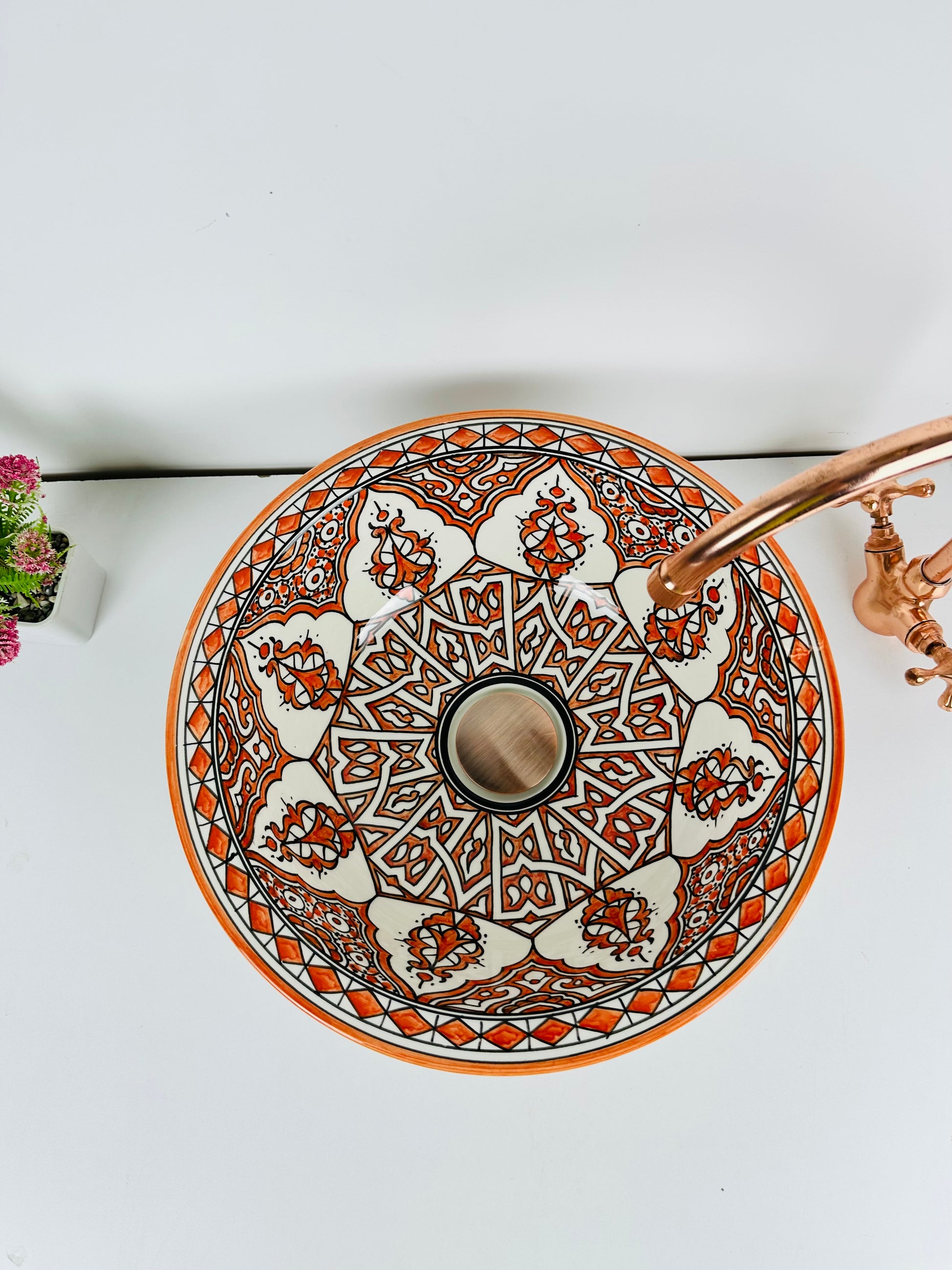 Moroccan tangerine : Handcrafted Ceramic Sink with Warm Orange Tones