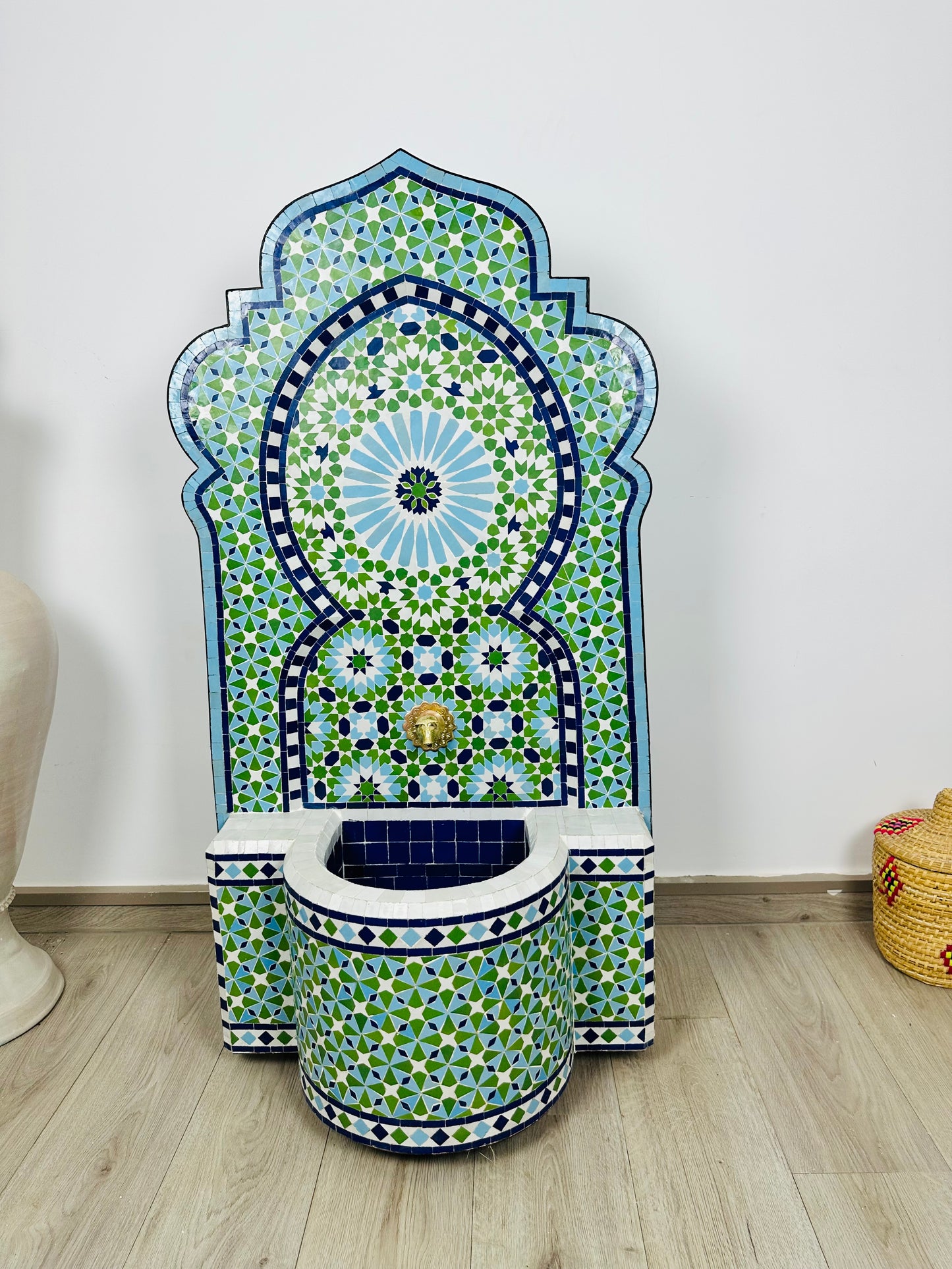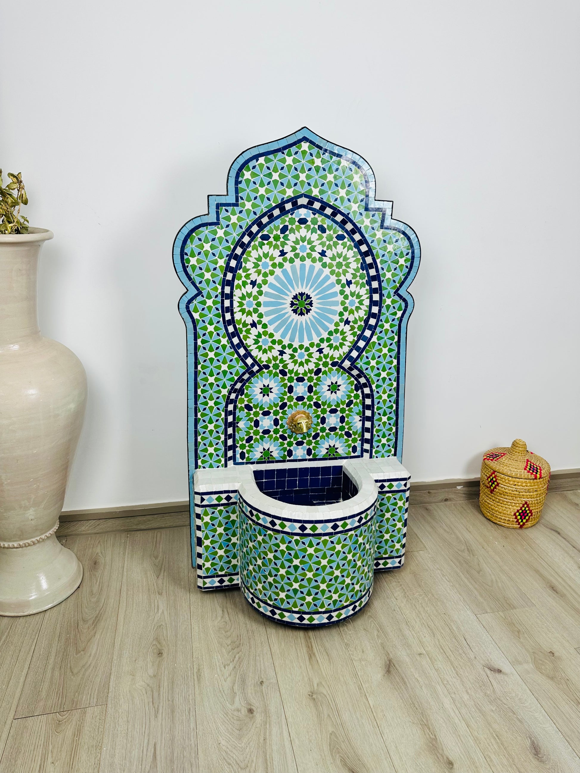 Transform your space with this stunning Moroccan fountain, featuring handcrafted Zellige tiles in a mesmerizing blue and green mosaic pattern. Designed with precision, this fountain embodies Moroccan tradition while offering a modern touch of luxury.
