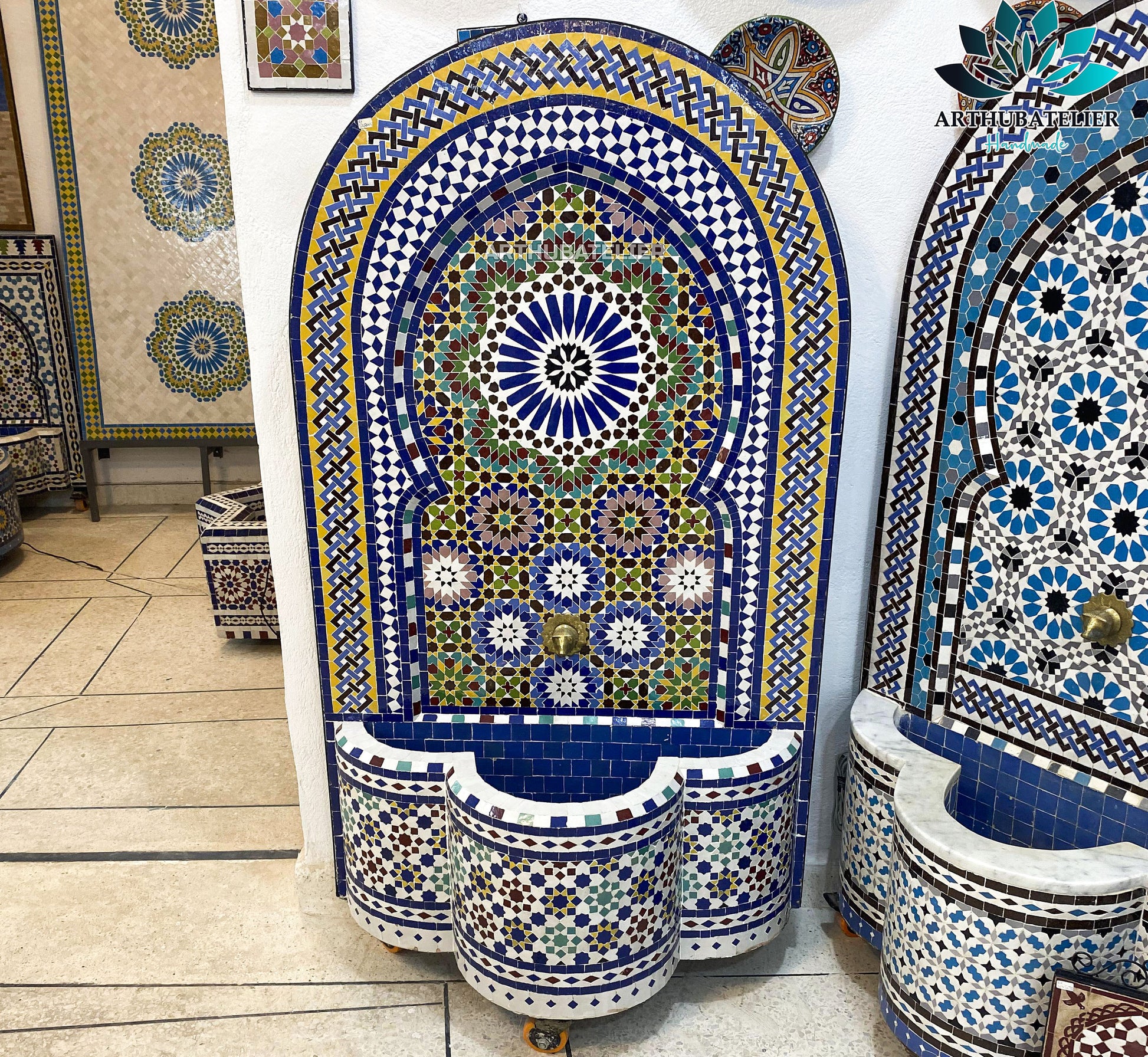 Elevate your space with this stunning handcrafted Moroccan fountain, designed to showcase the rich cultural heritage of Moorish artistry. Featuring an intricate mosaic of hand-cut Zellige tiles, this piece is a true work of art, blending traditional craftsmanship with timeless elegance.