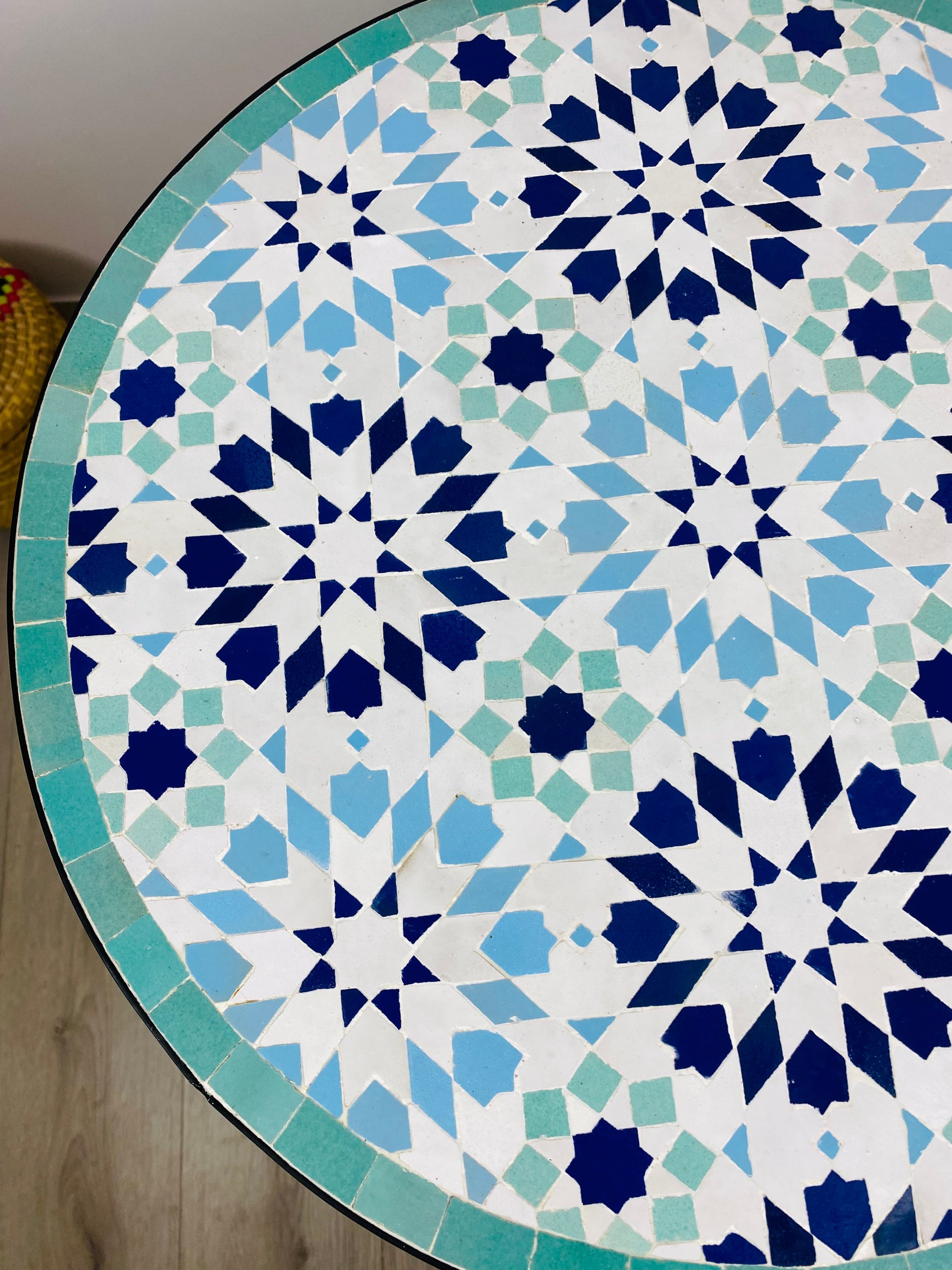 Handmade Moroccan Zellige Mosaic Table – Tranquil Blue Elegance