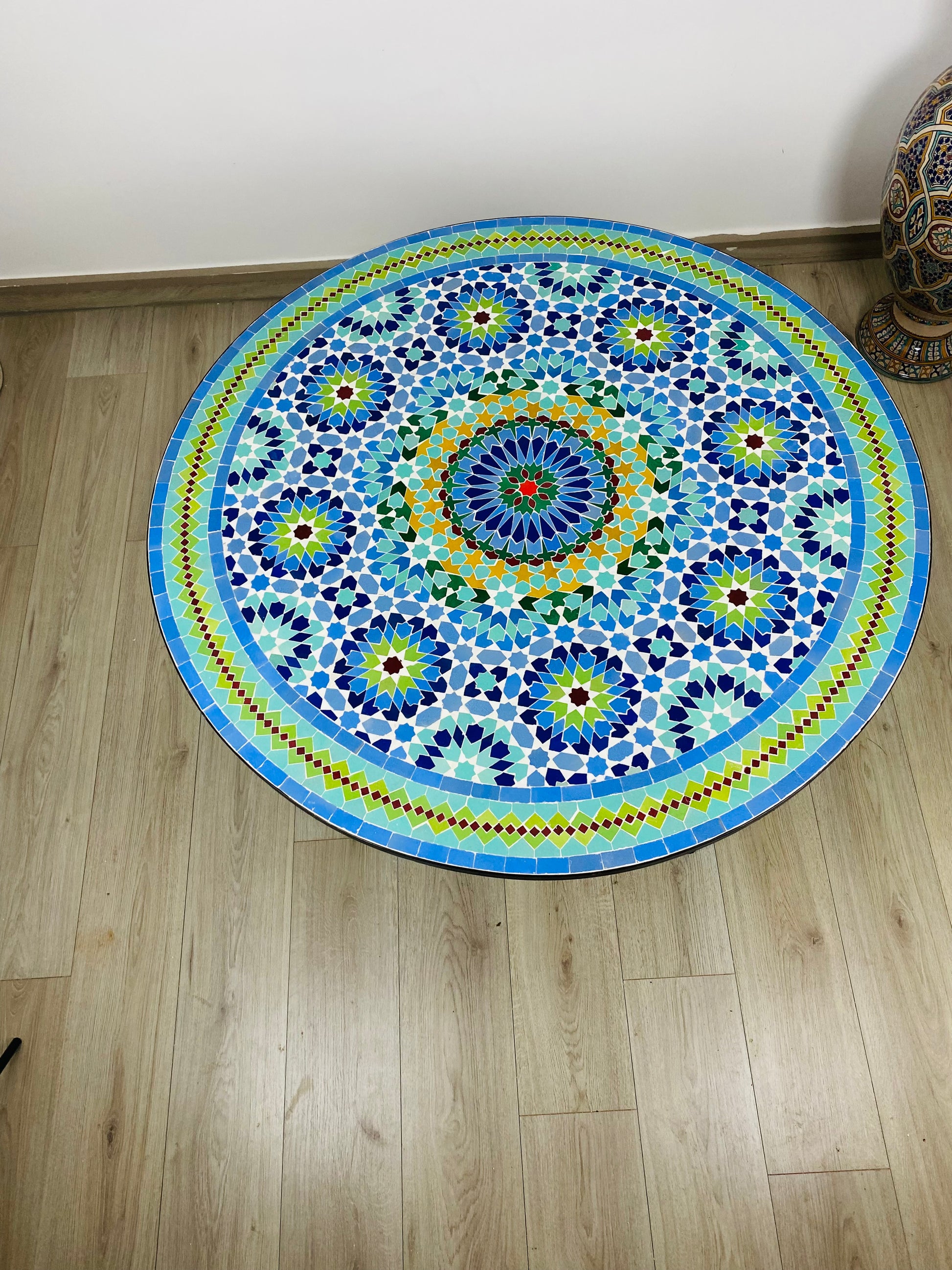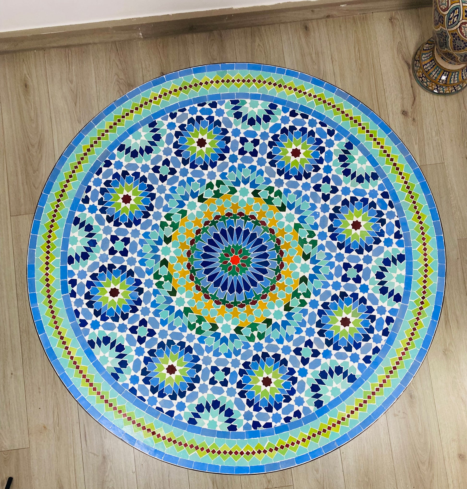 Handmade Moroccan Zellige Mosaic Table – Ocean-Inspired Beauty
