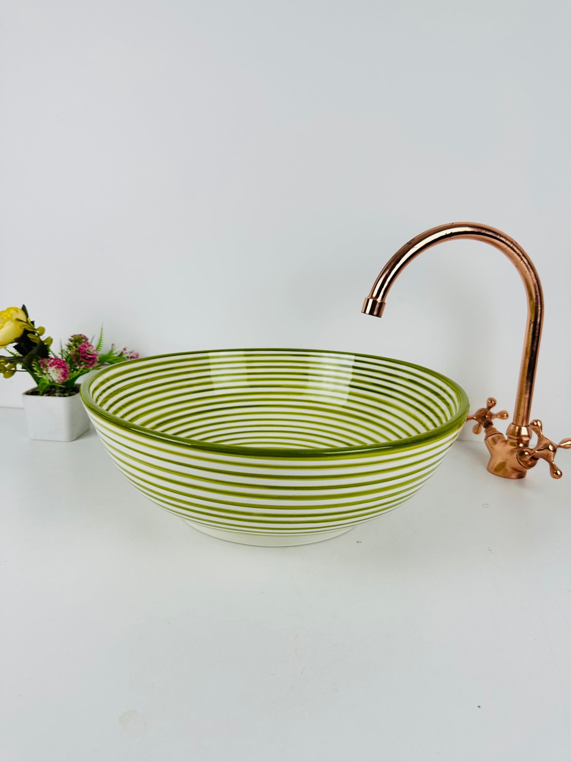 Olive Grove: Handcrafted Ceramic Sink in rich Green shade