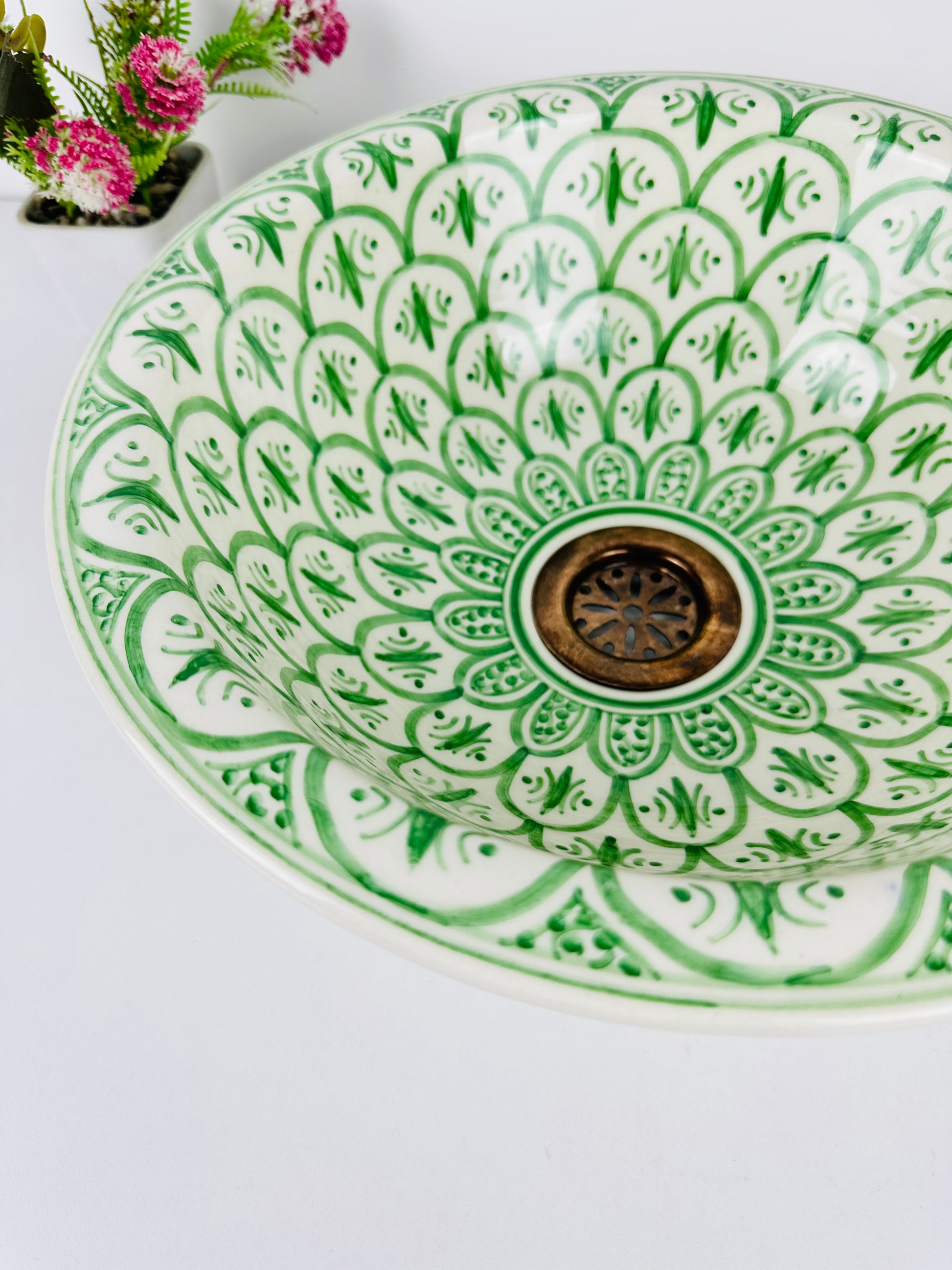 Pastel Meadow: Handcrafted Ceramic Sink in Light Green Shade