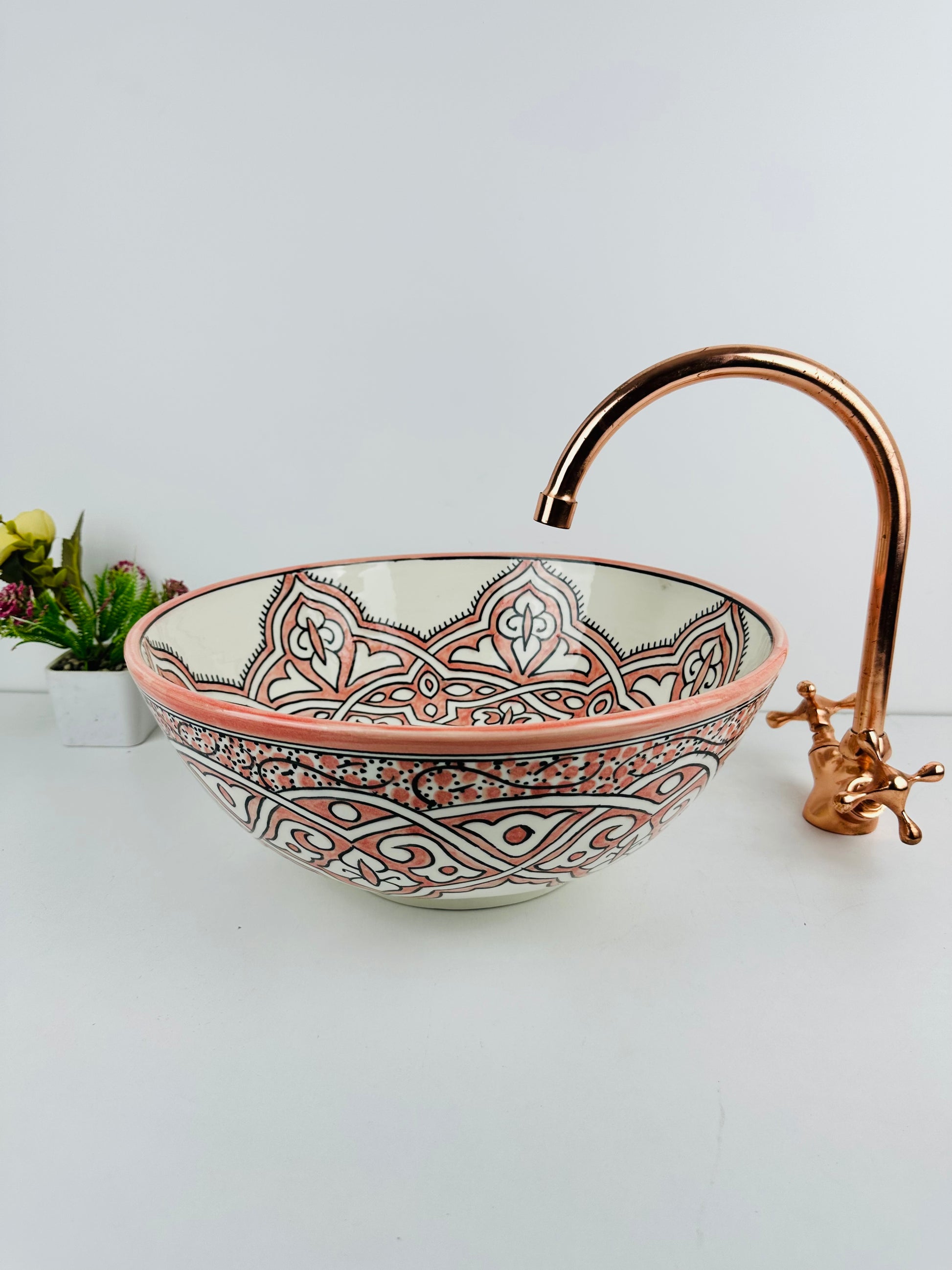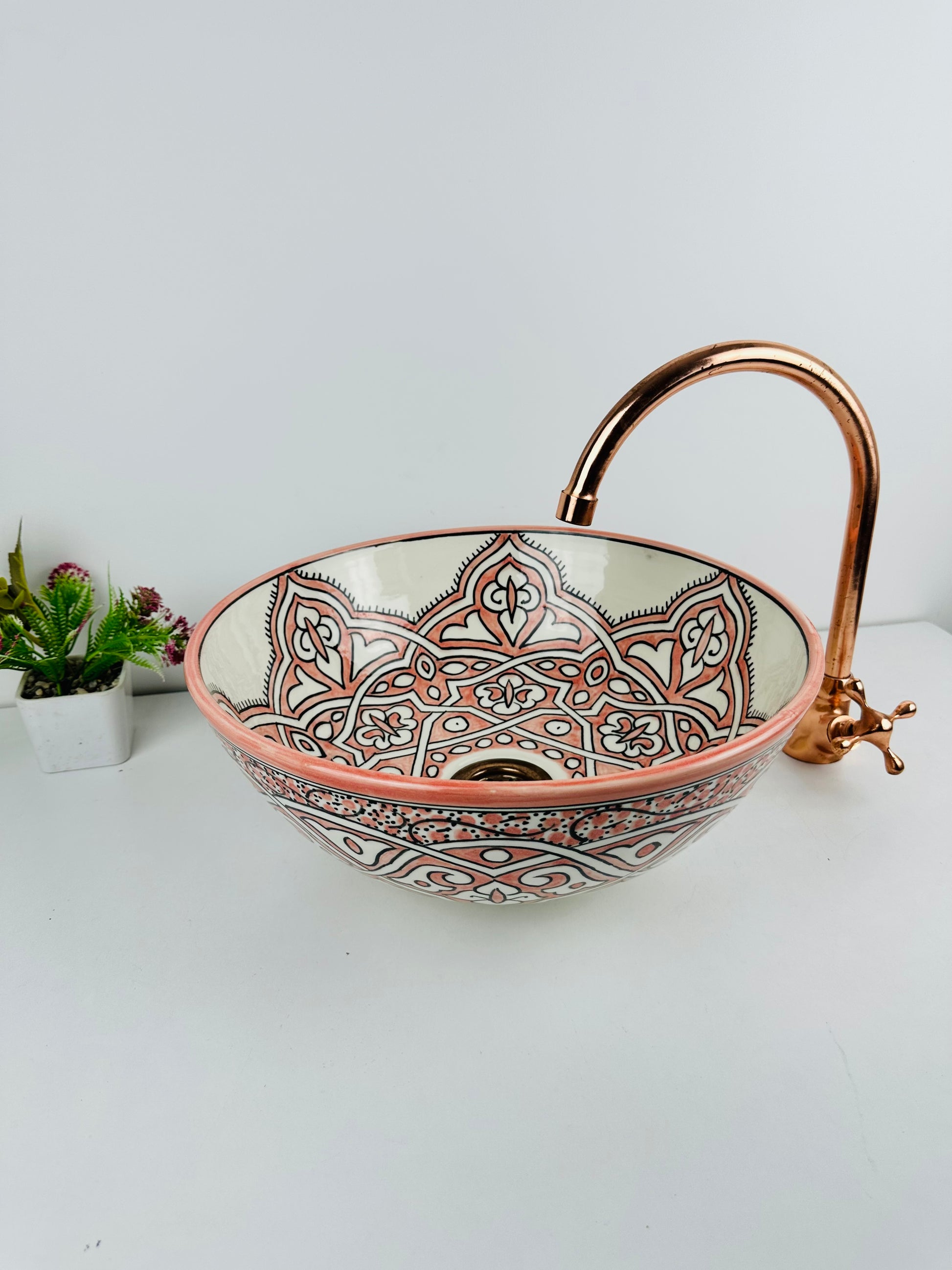 Peach Blossom: Traditional Handcrafted Ceramic Sink 100% hand painted