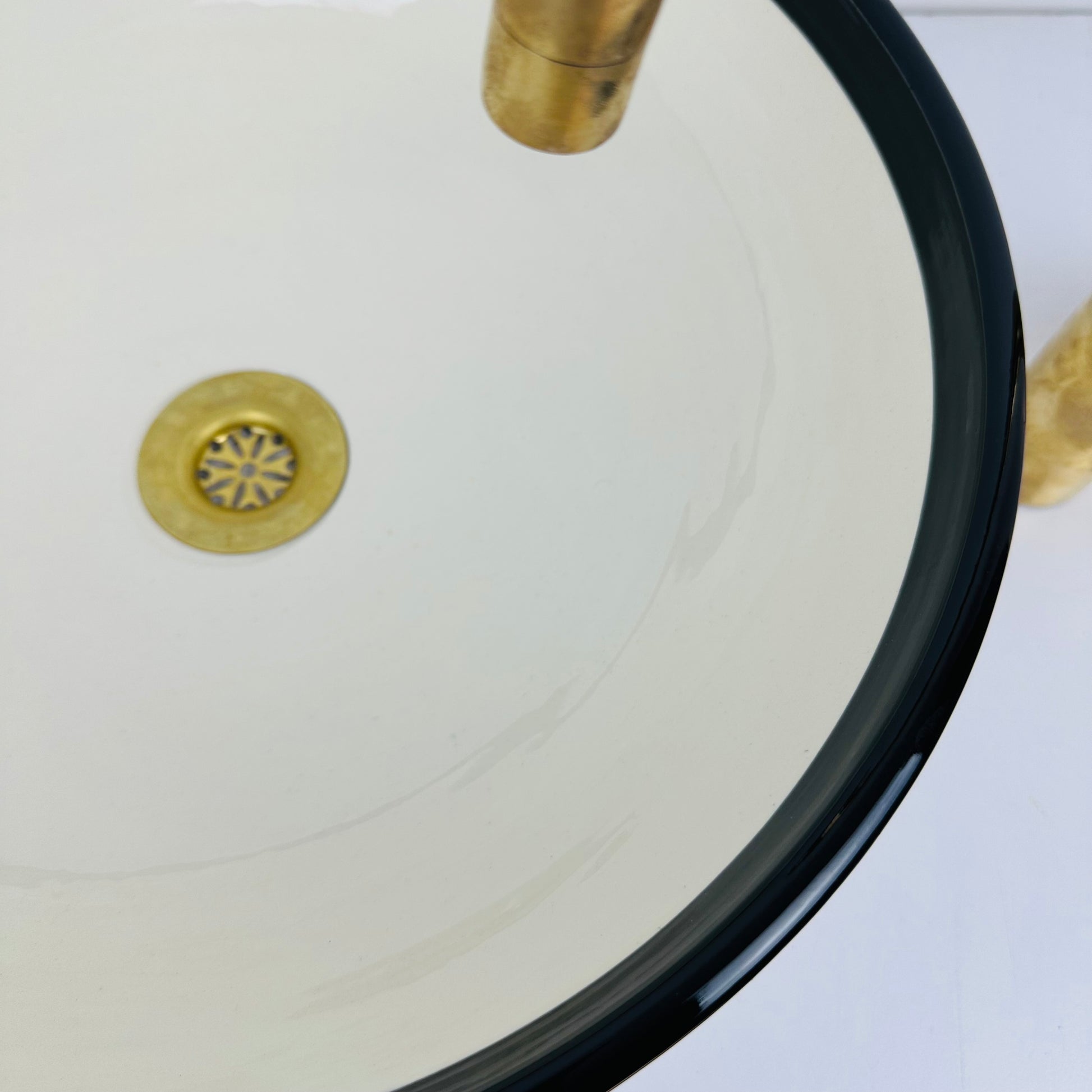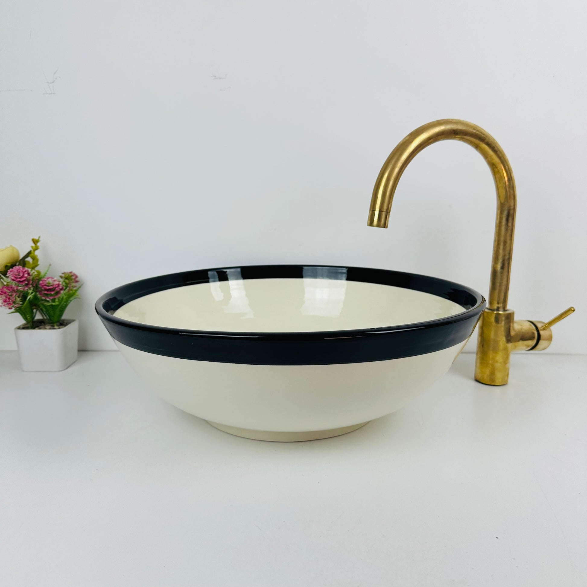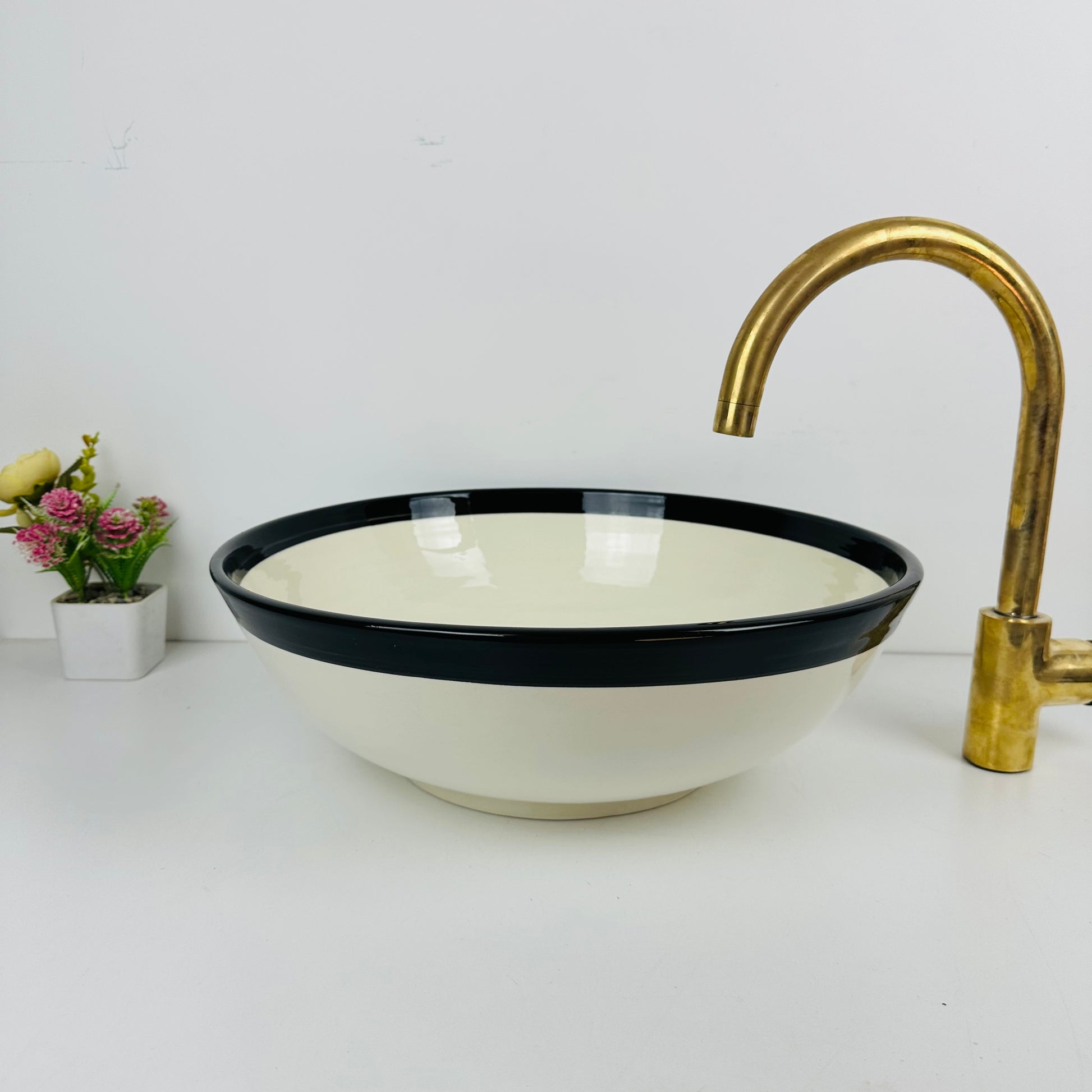 Round Elegance: Handcrafted Ceramic Sink with Black Top Finish