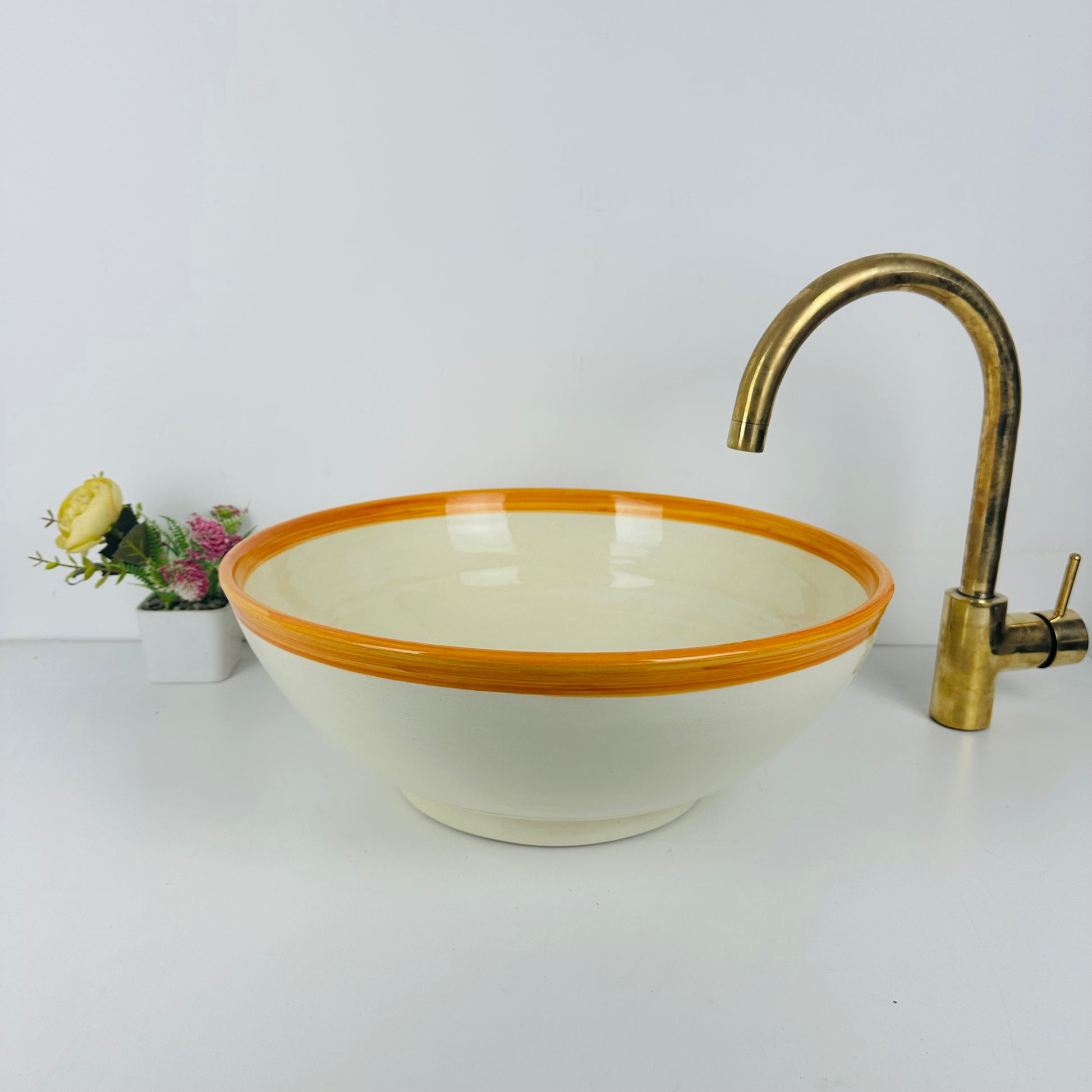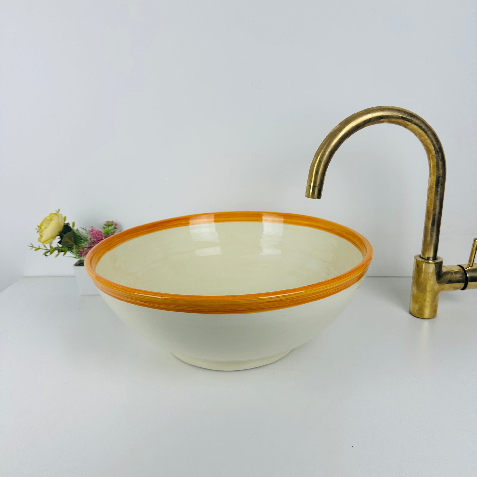 Round Elegance: Handcrafted Ceramic Sink with Orange Top Finish