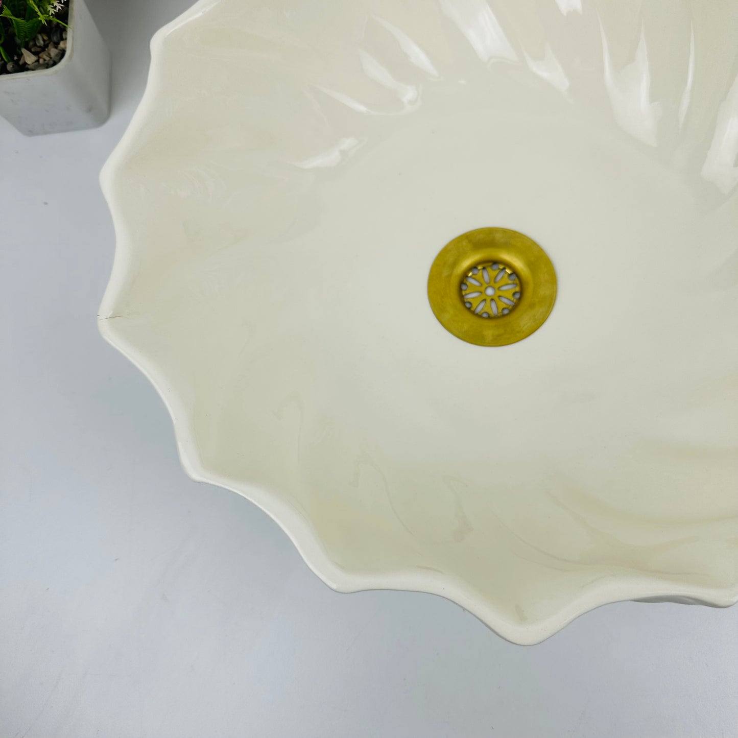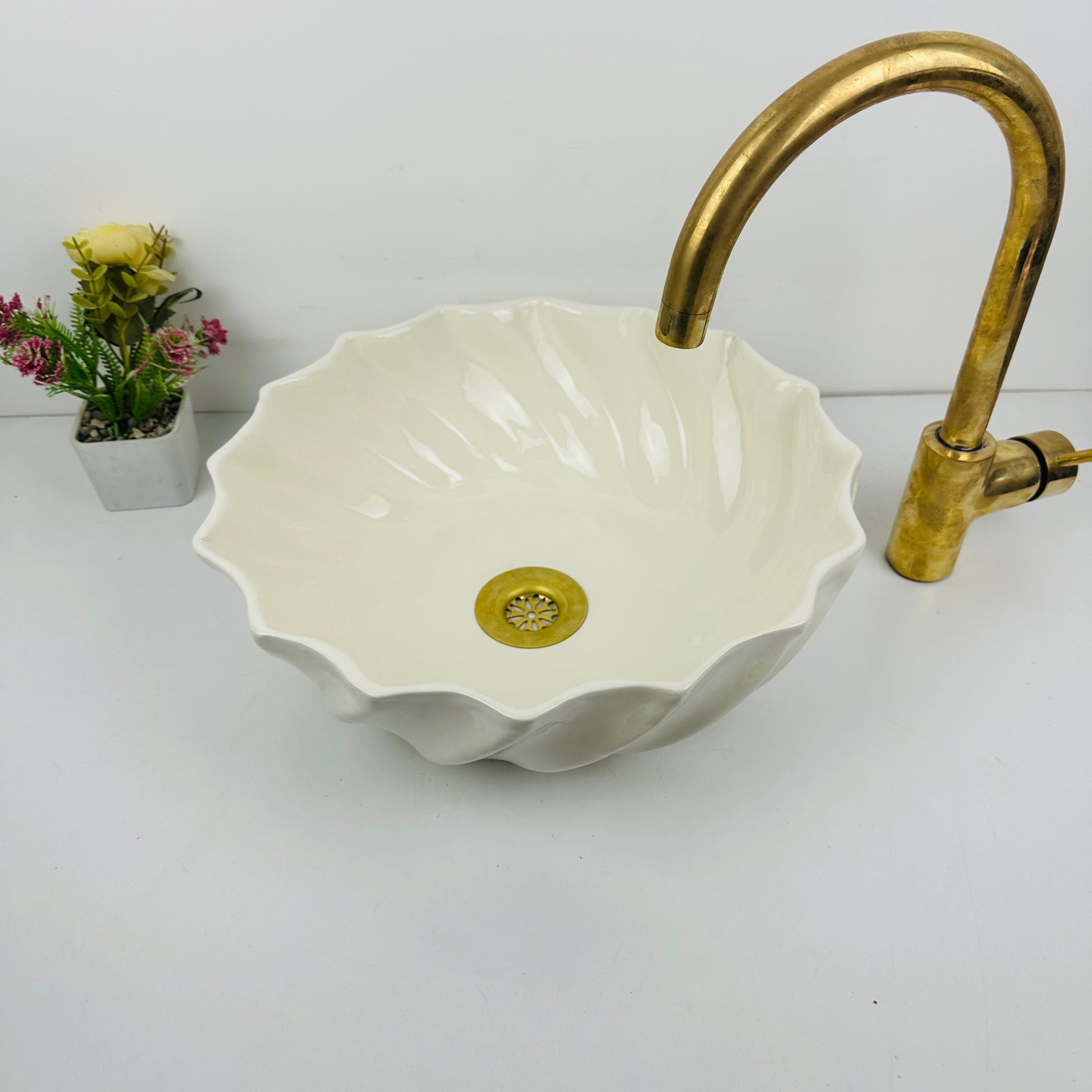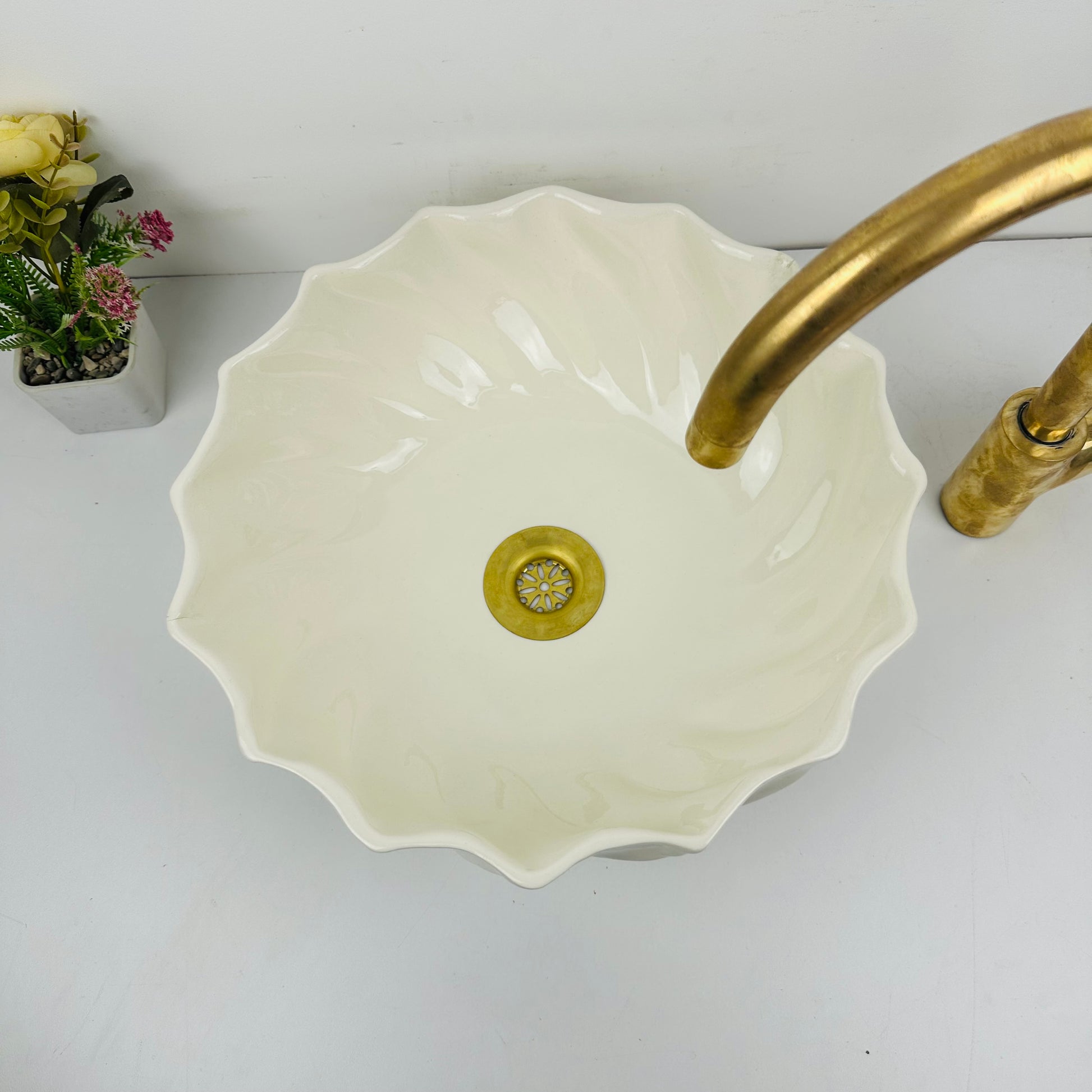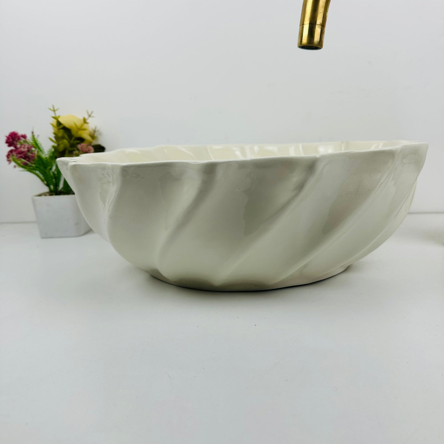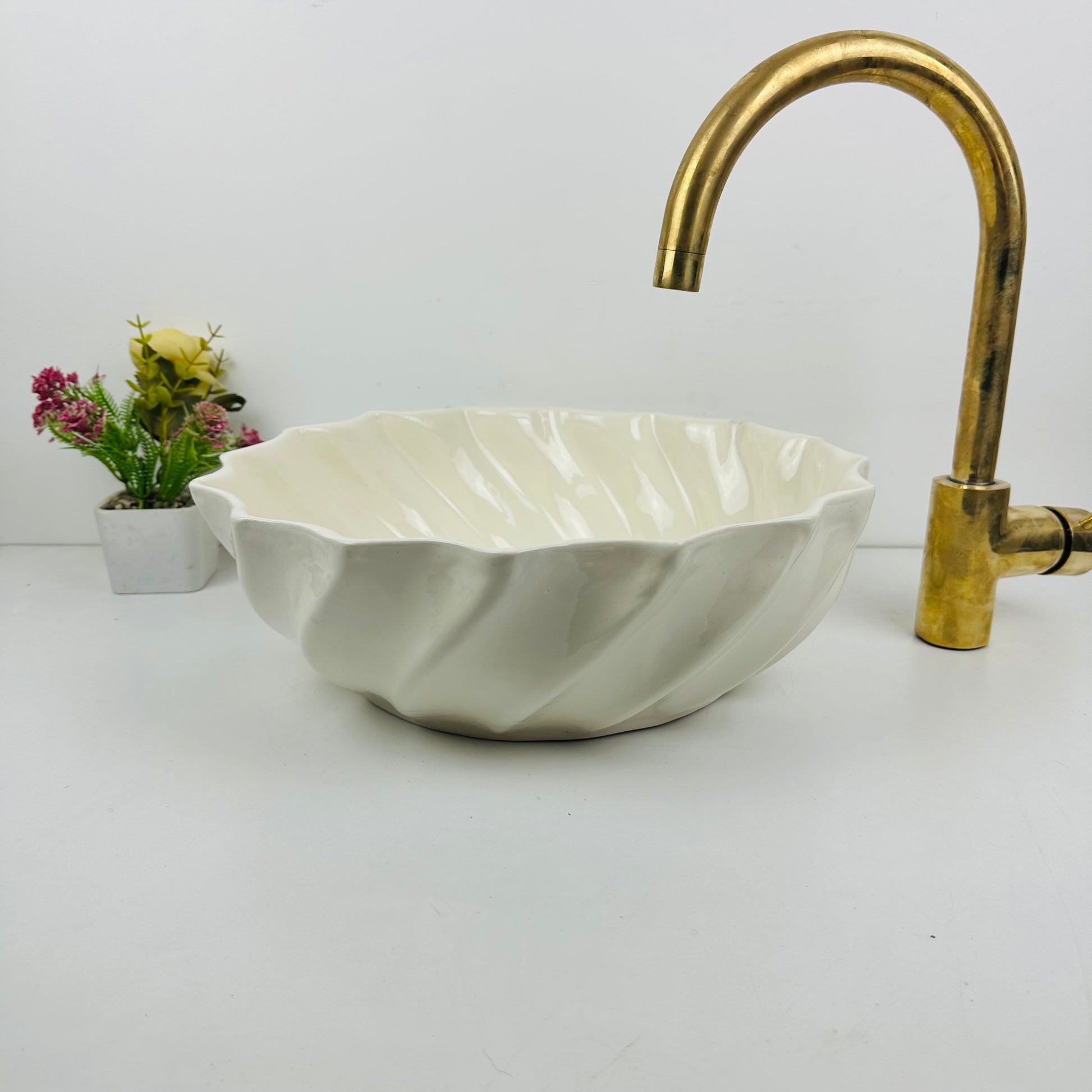 Sandy Waves: Handcrafted Beige Ceramic Sink with Wave-Inspired Design