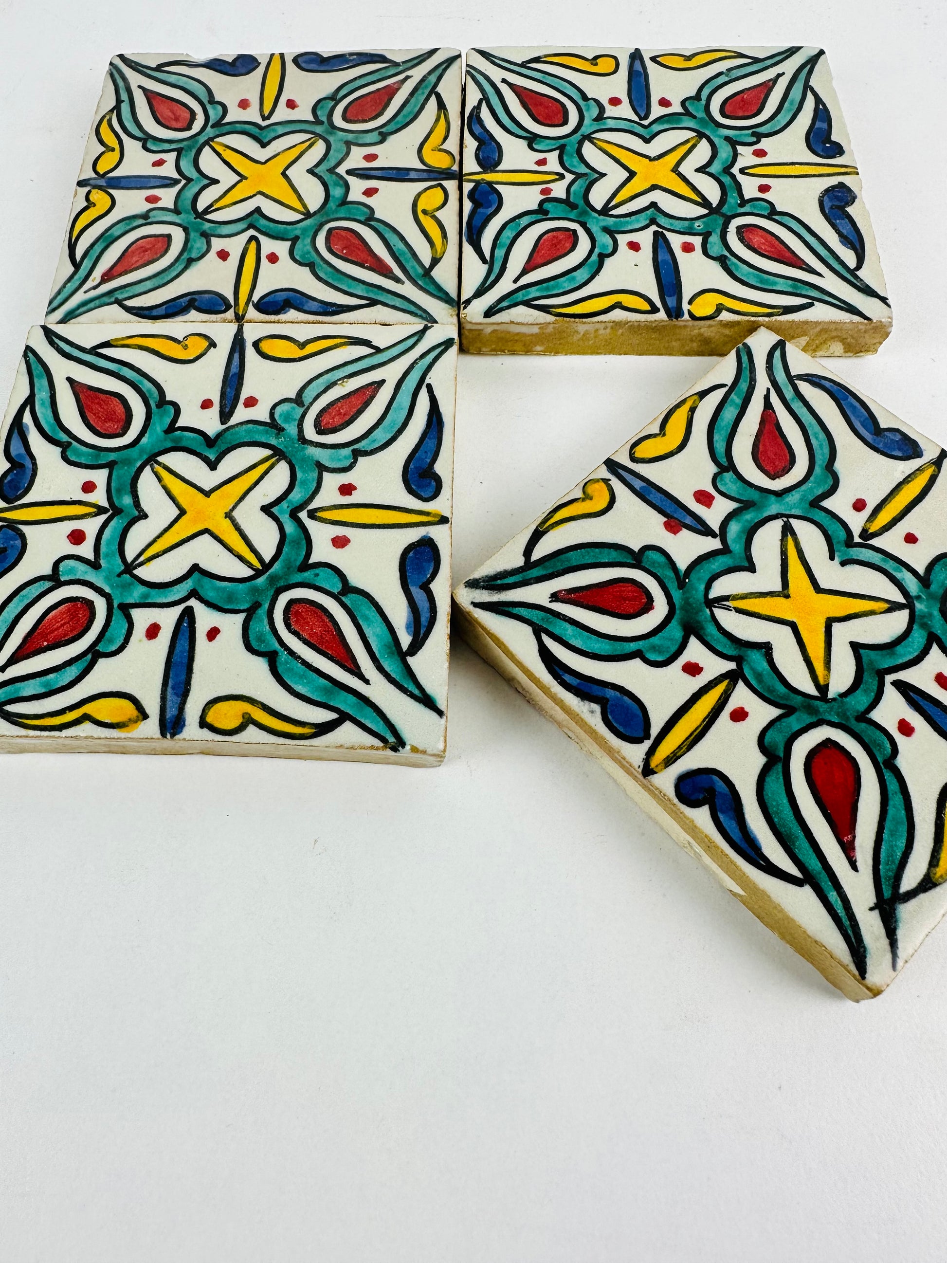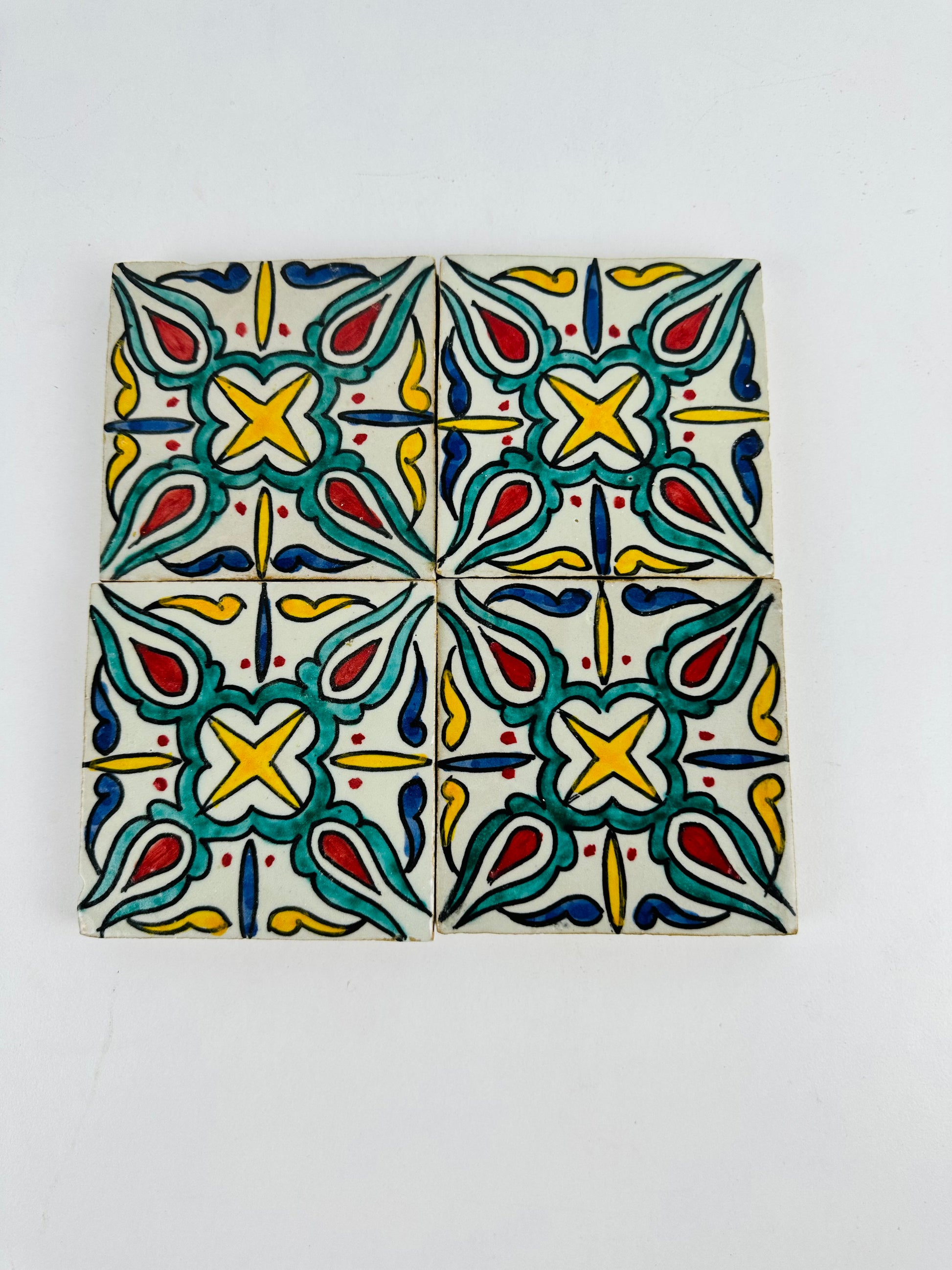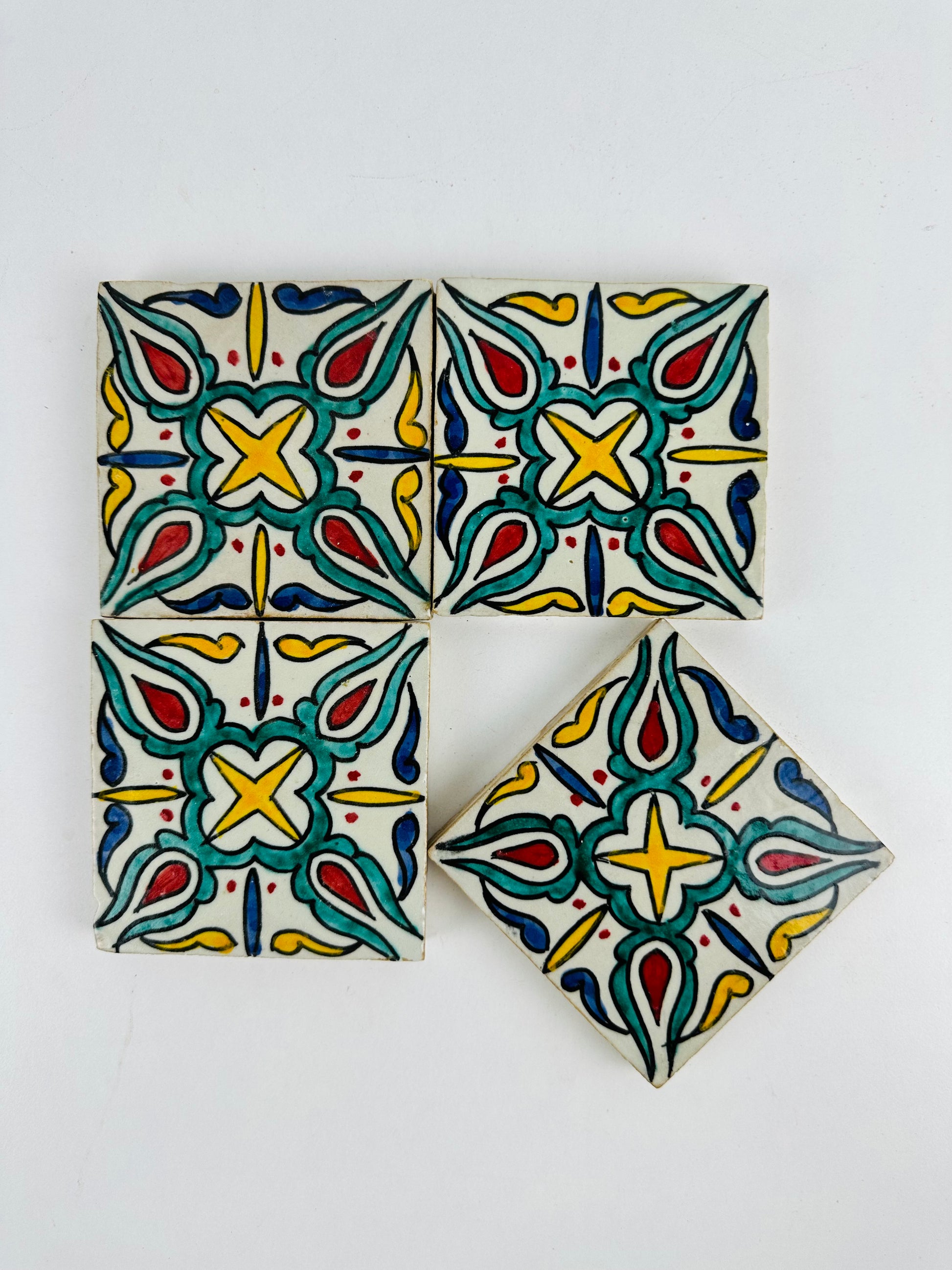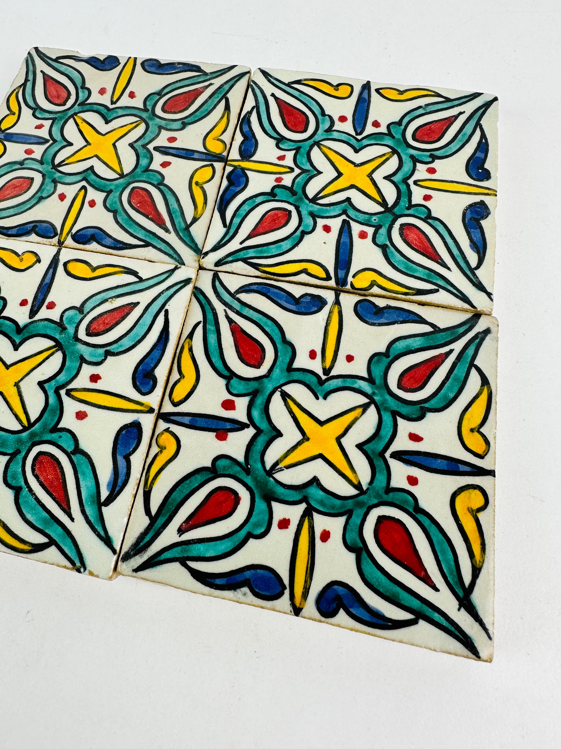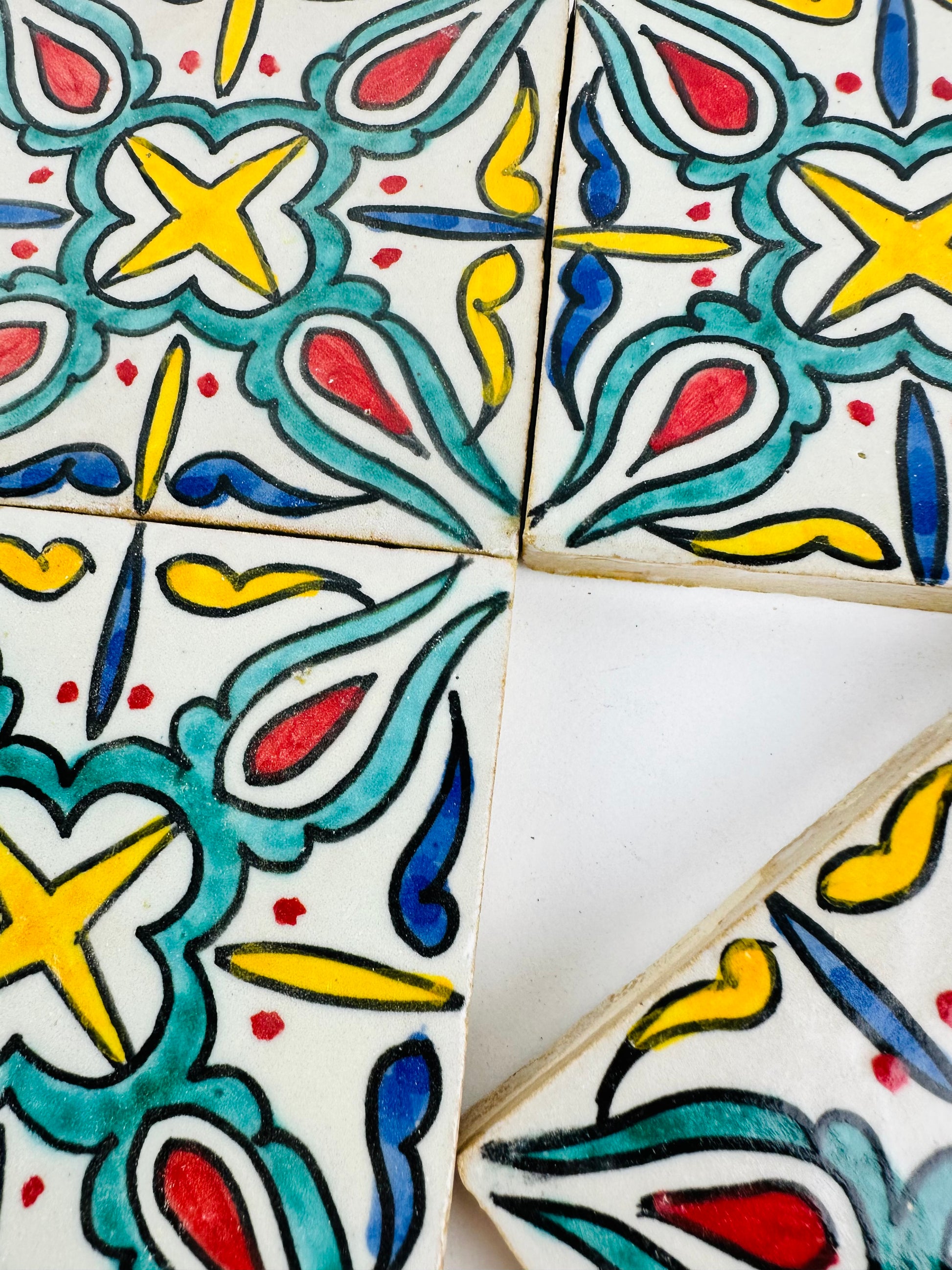 The Andalusian Bloom Moroccan Tile is a masterpiece of floral symmetry and rich color combinations. Inspired by the intricate patterns found in Andalusian architecture, this tile features a vibrant yellow floral medallion at the center, framed by flowing teardrop motifs in deep red, green, and blue. The delicate detailing and bold contrasts make it an ideal choice for luxury interiors and artistic spaces.