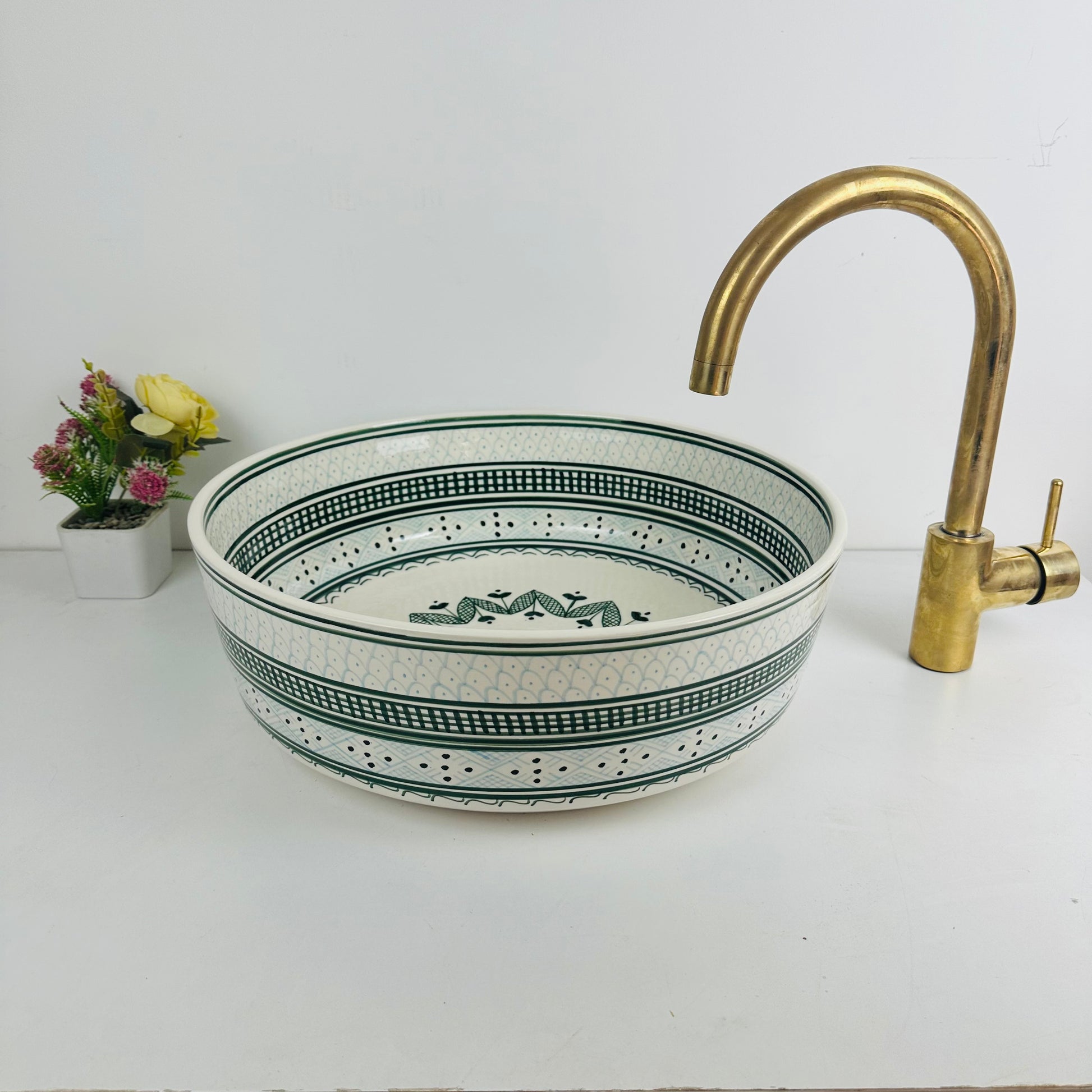 Shades of Green: Handcrafted Ceramic Sink with Varied Green Tones