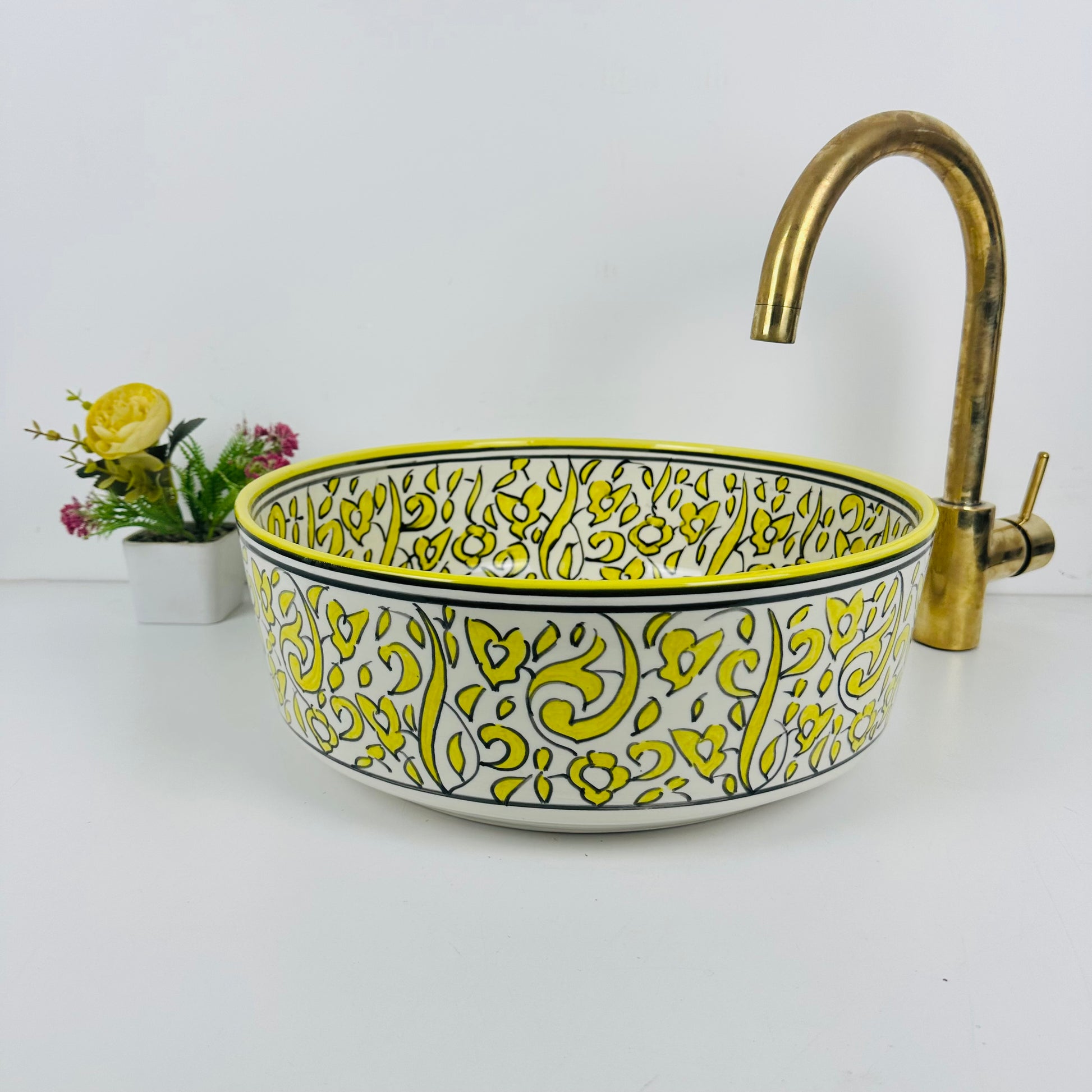 Sunlit Splendor: Handcrafted Ceramic Sink in Vibrant Yellow