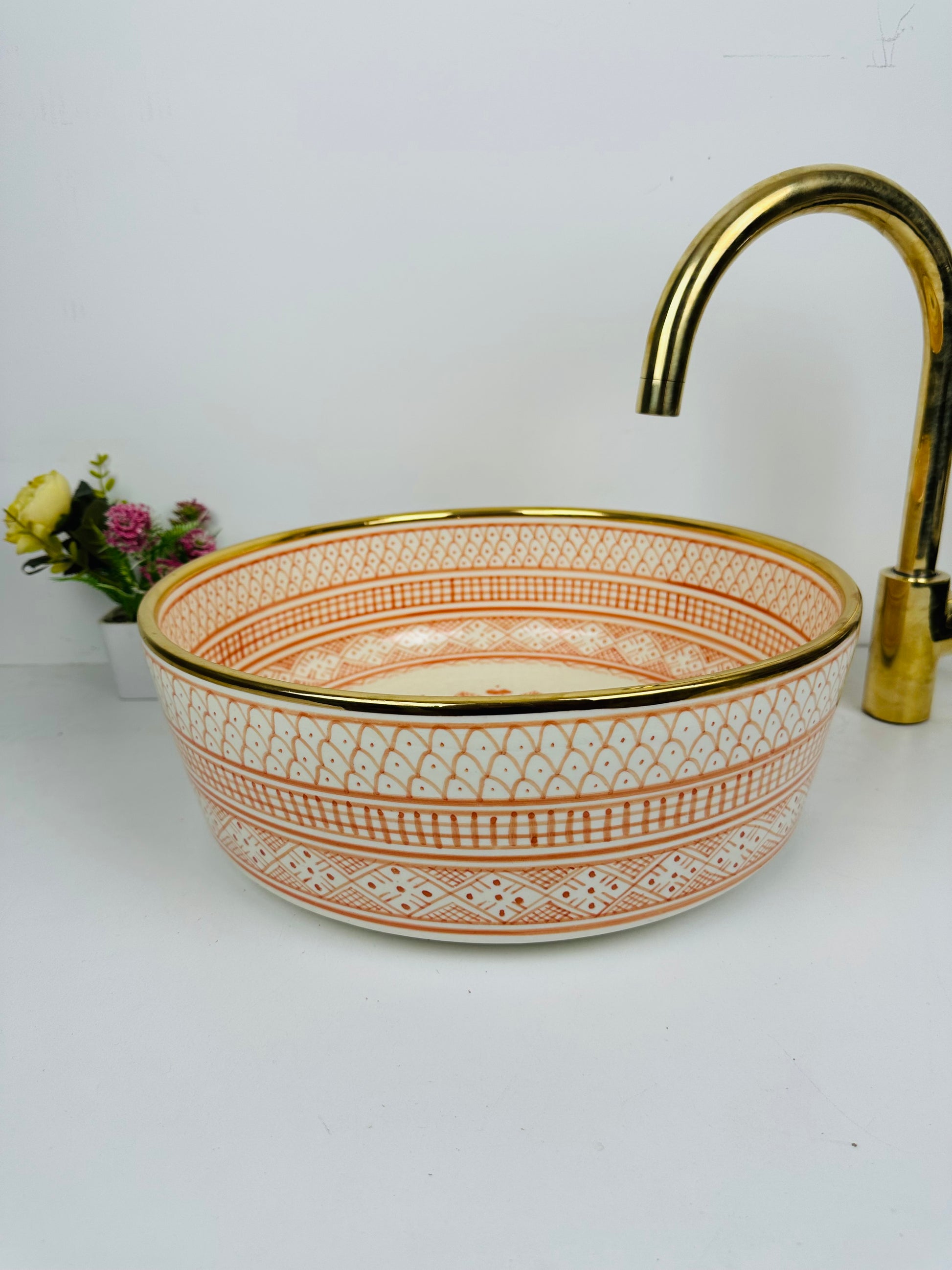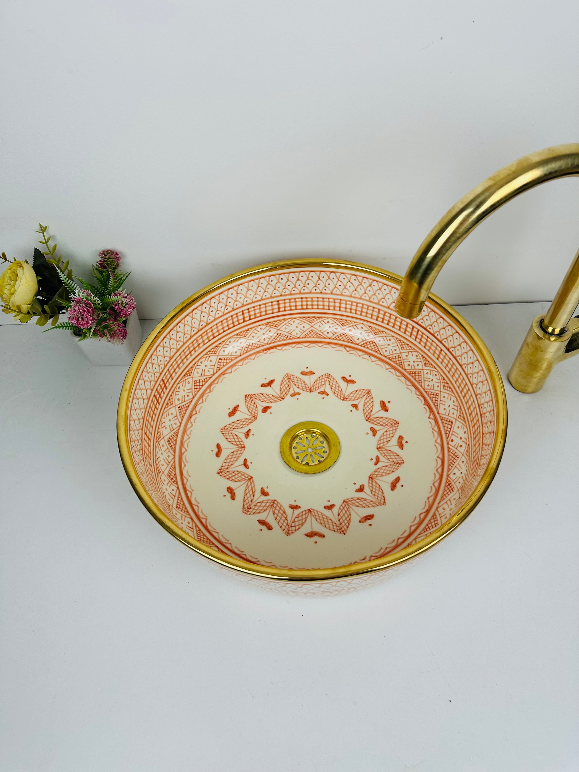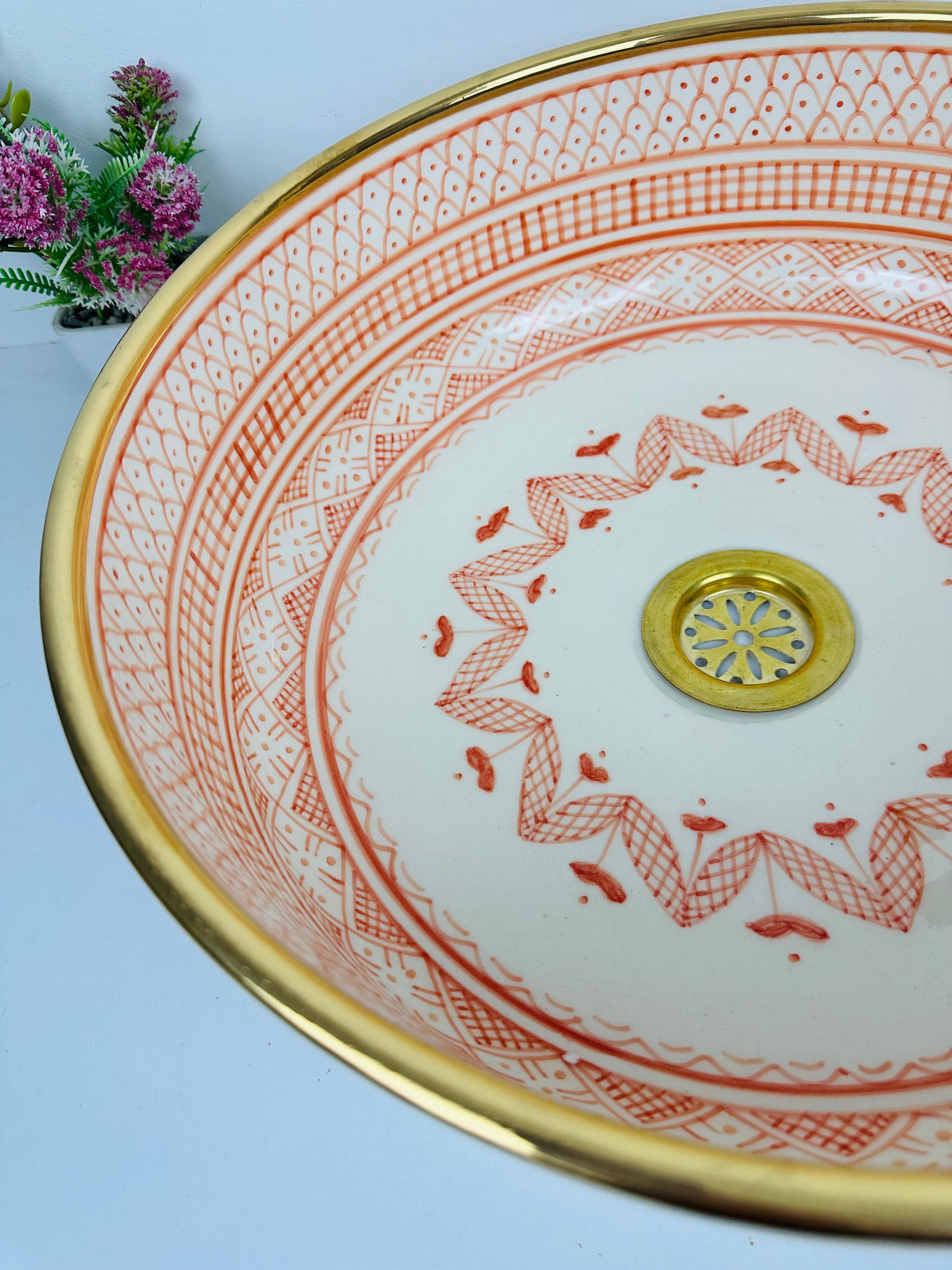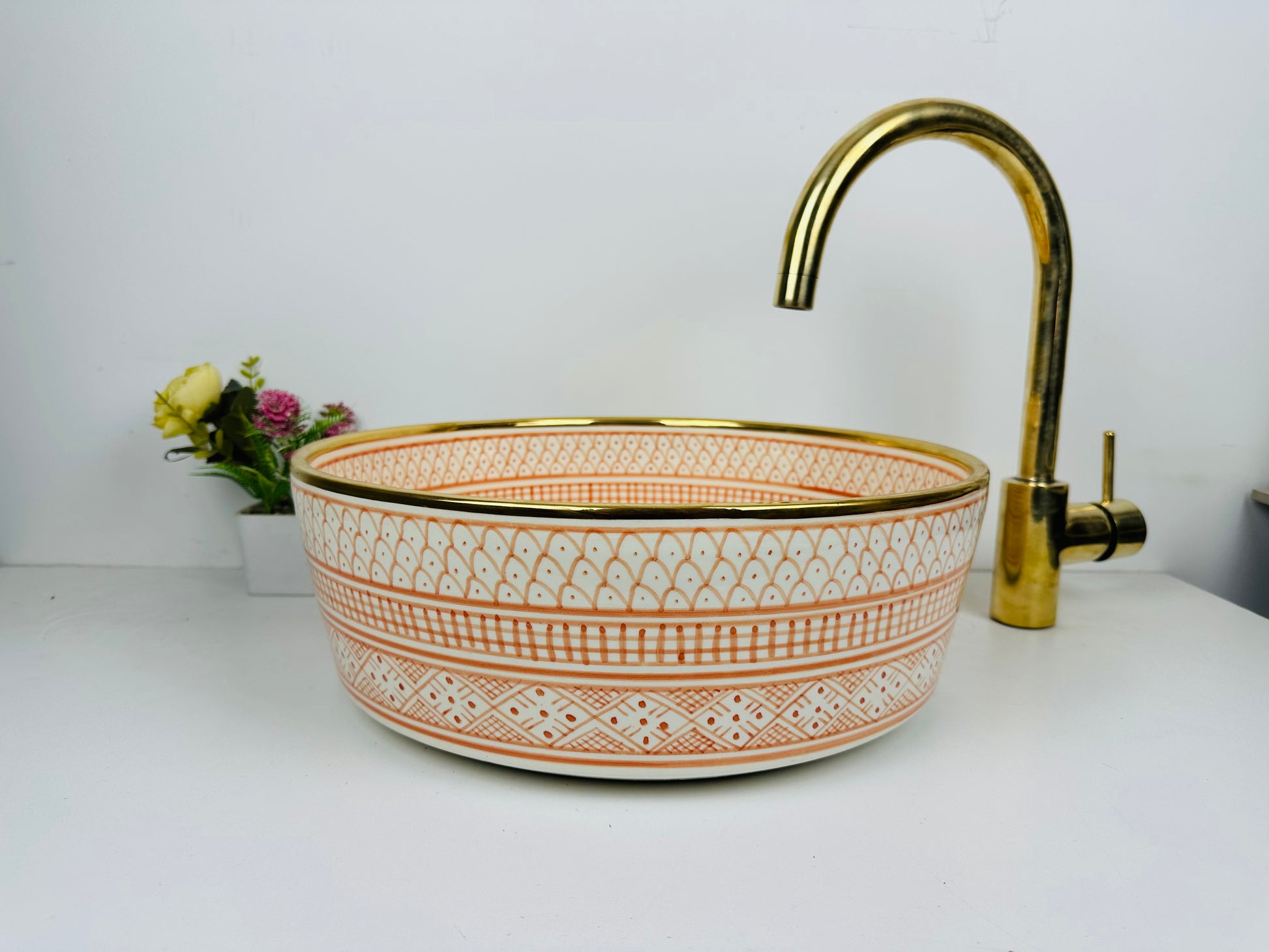 Sunrise Serenity: Handcrafted Ceramic Sink in Light Salmon and 14K gold