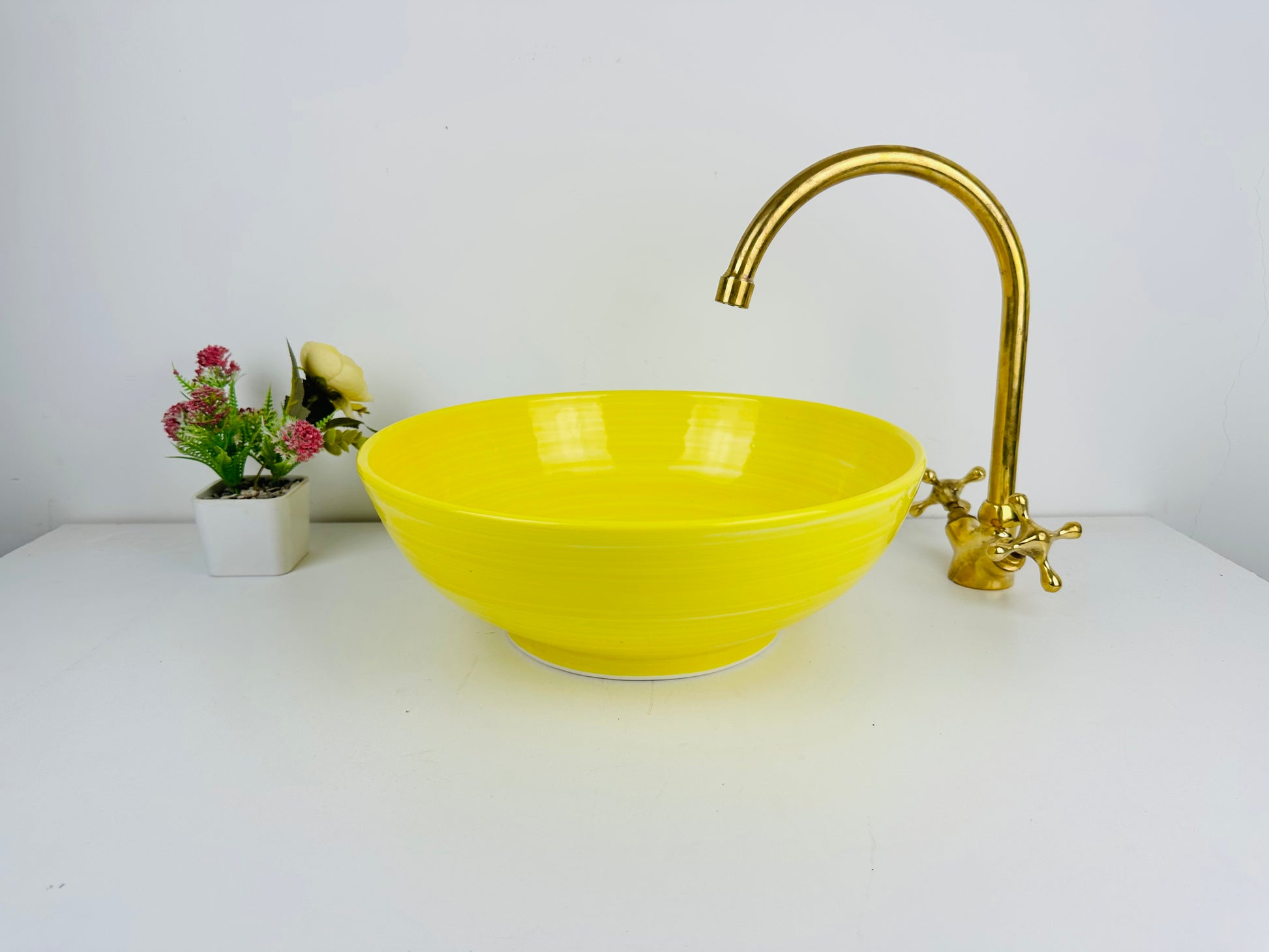 Sunshine Glow: Handcrafted Ceramic Sink in Vibrant Yellow Hue