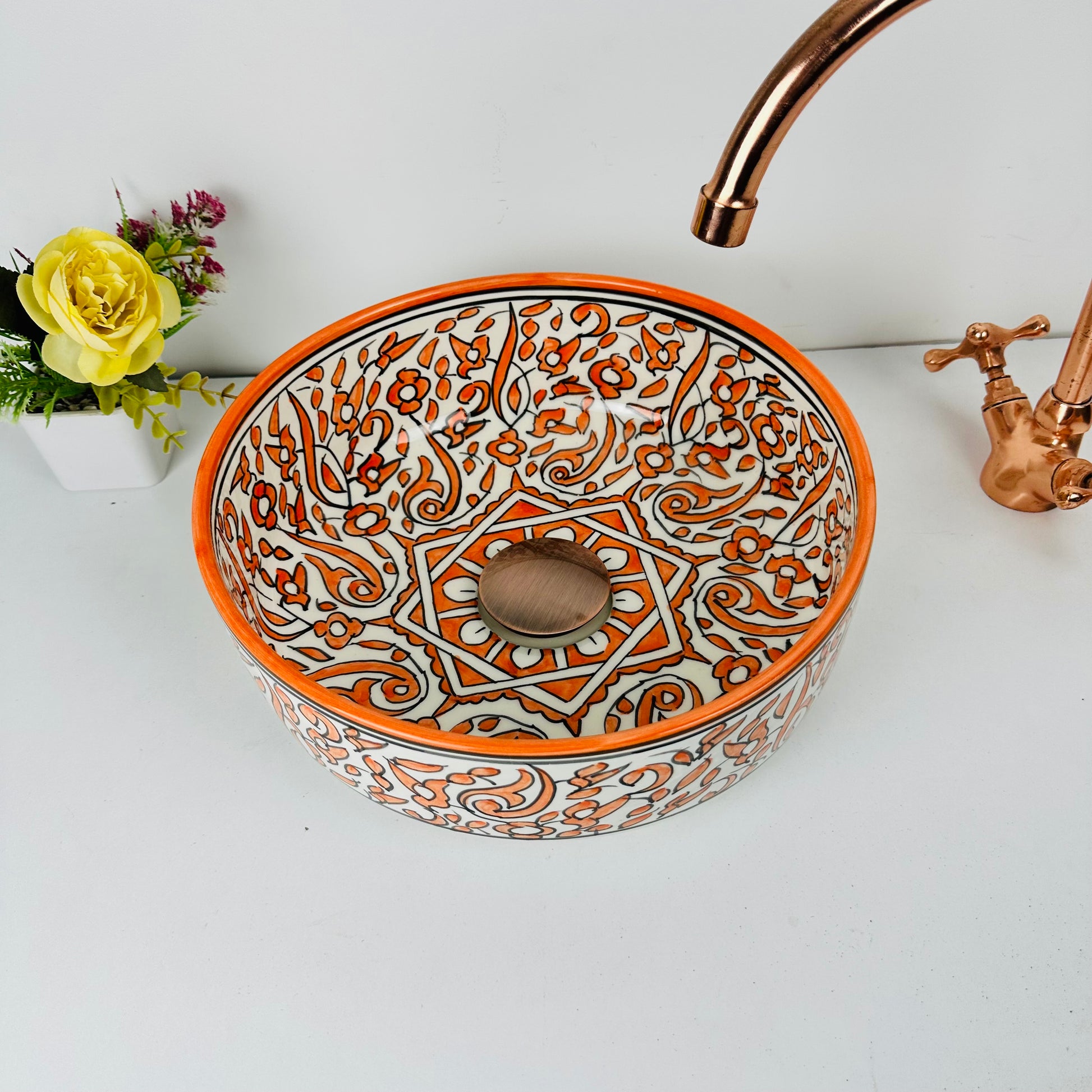 Tangerine Serenity: Handcrafted Ceramic Sink in tangerine orange Hue