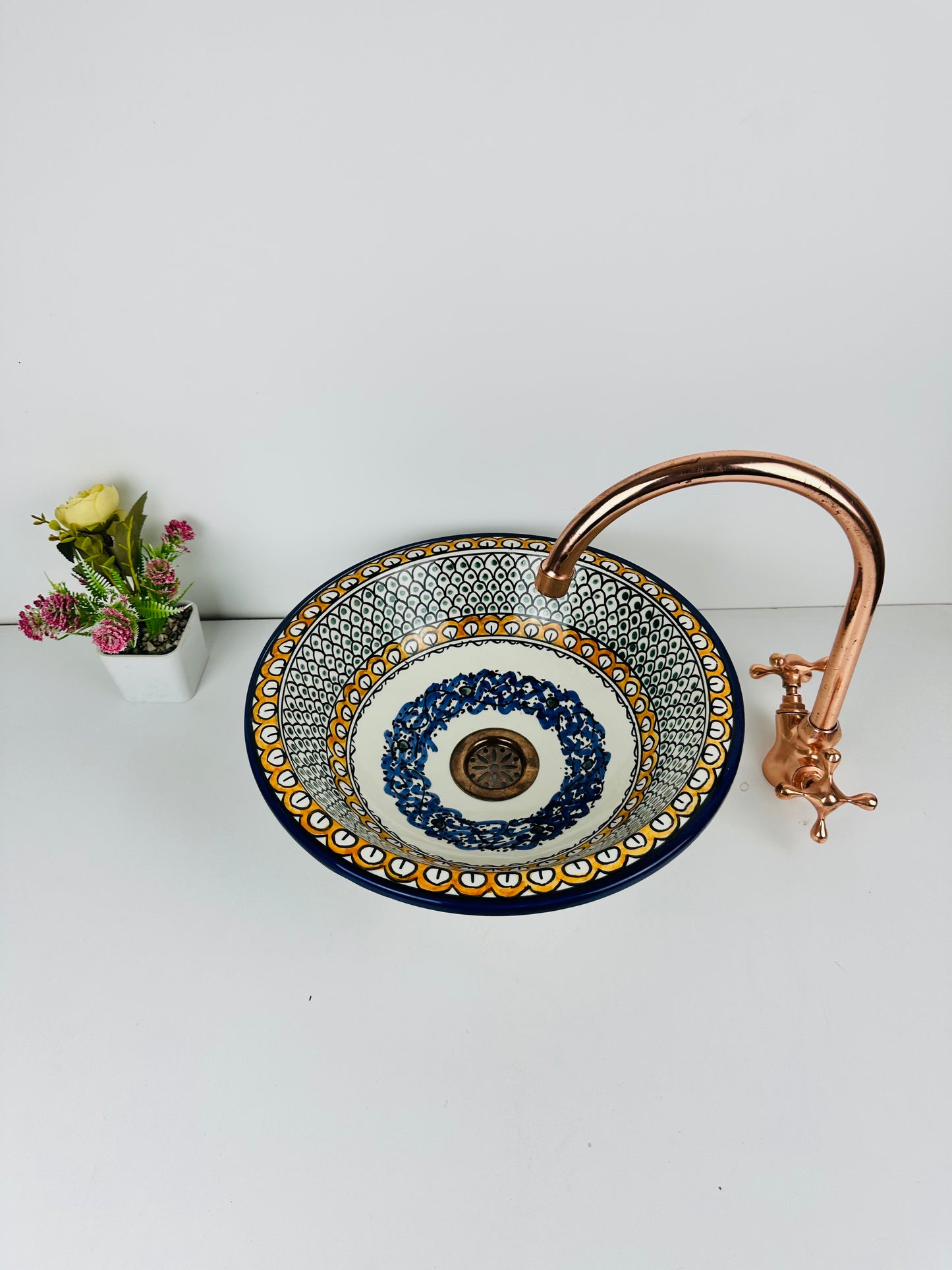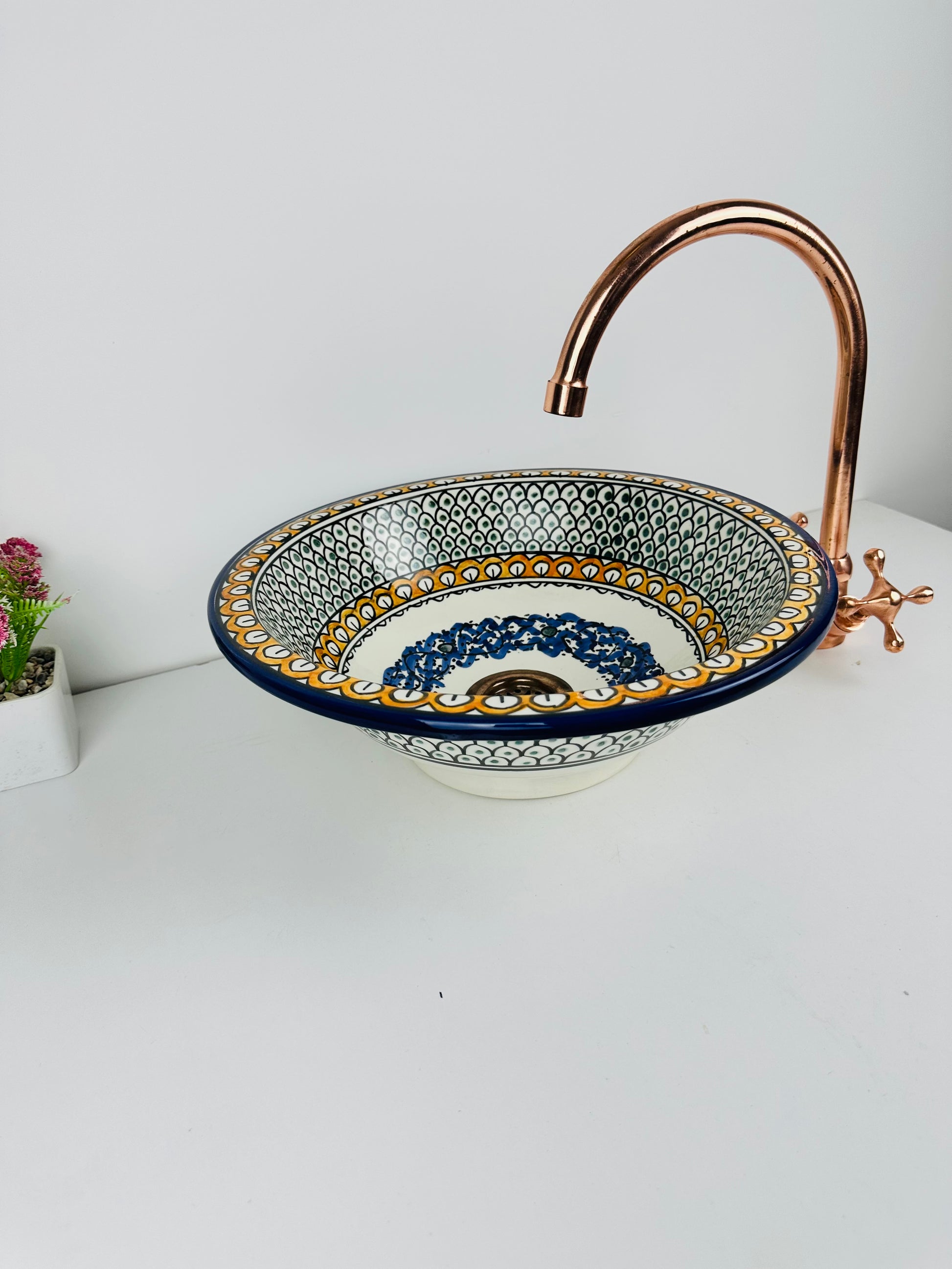 Tropical Fusion: Handcrafted Ceramic Sink with Orange and Blue Accents