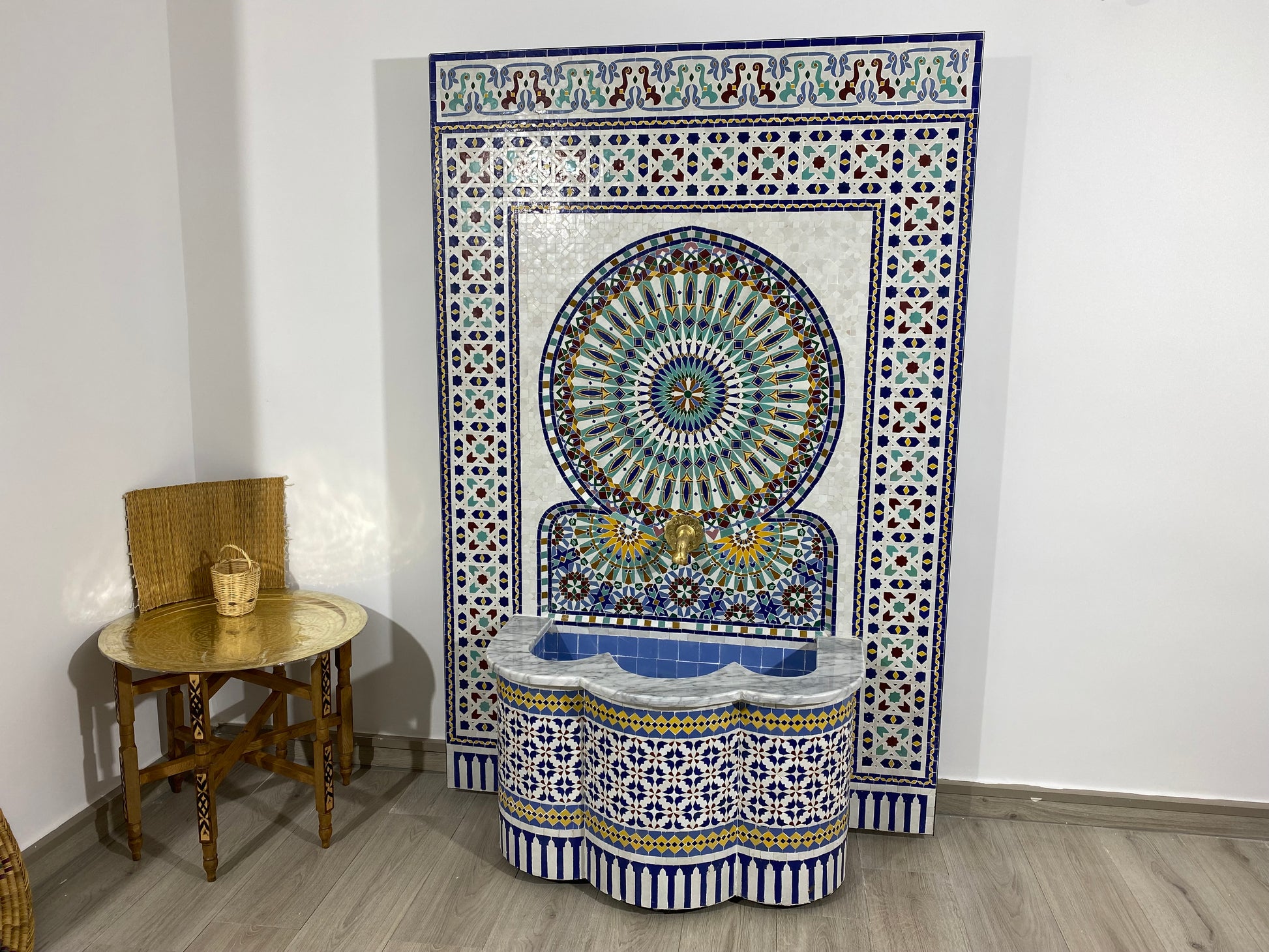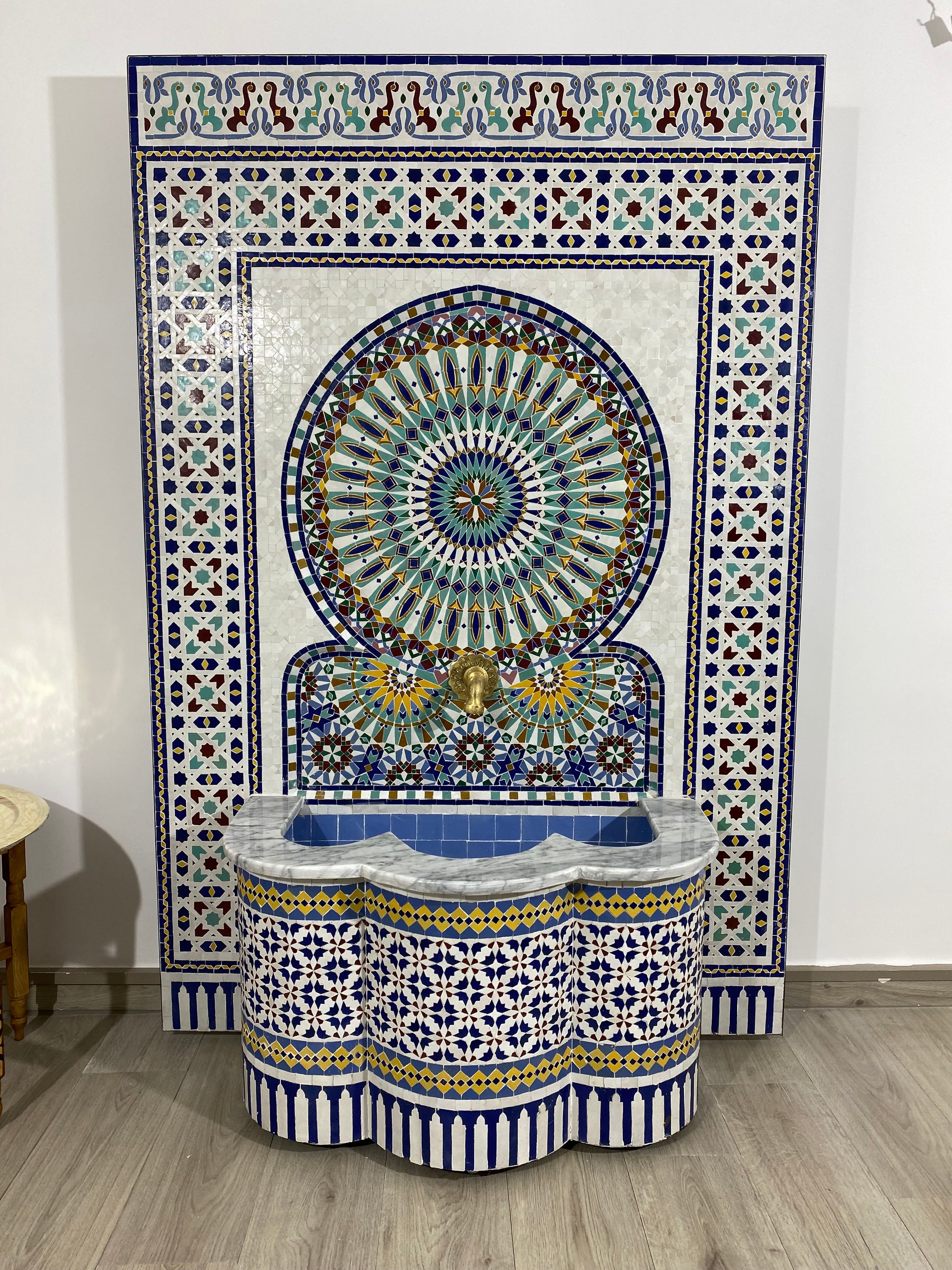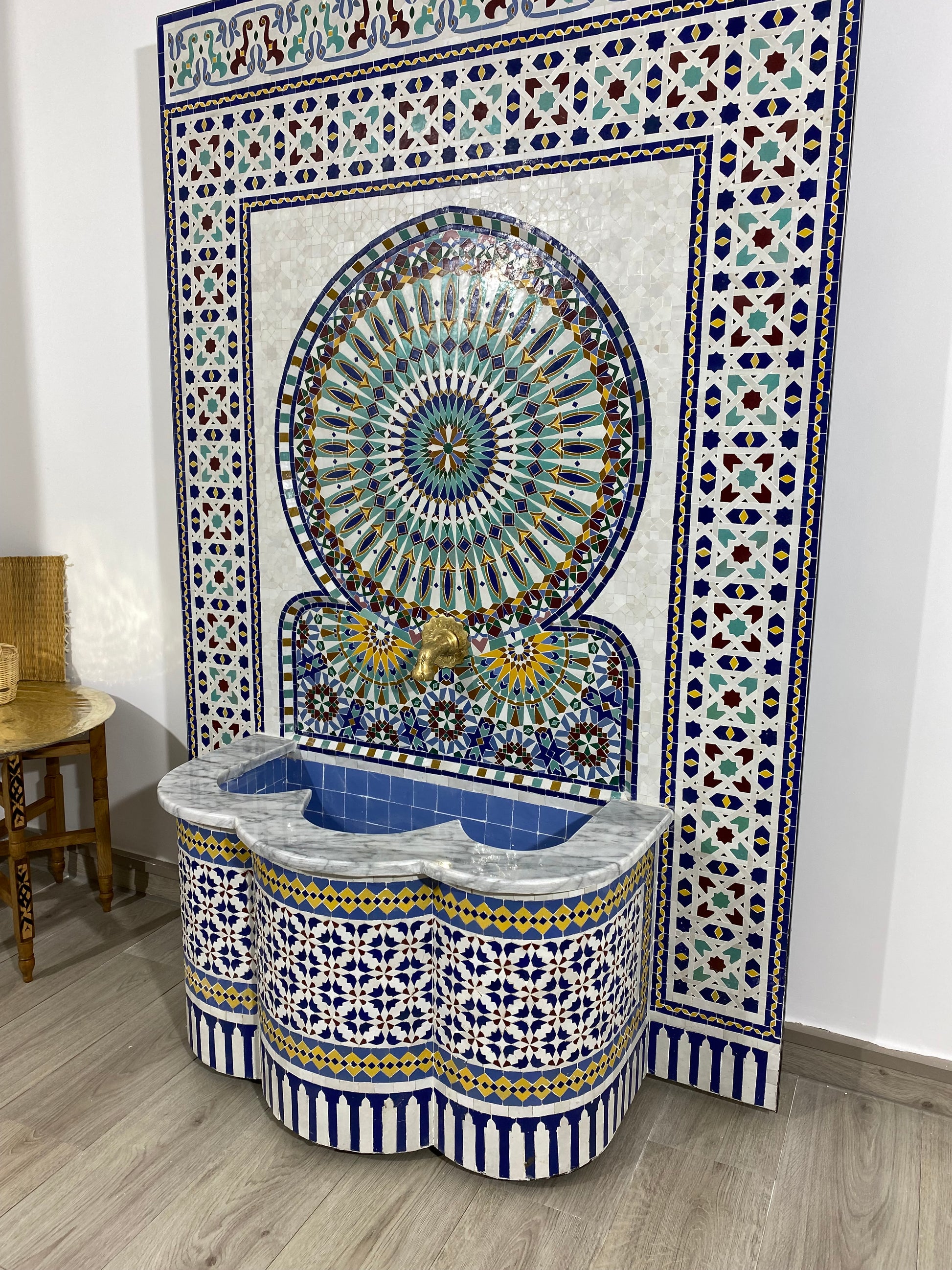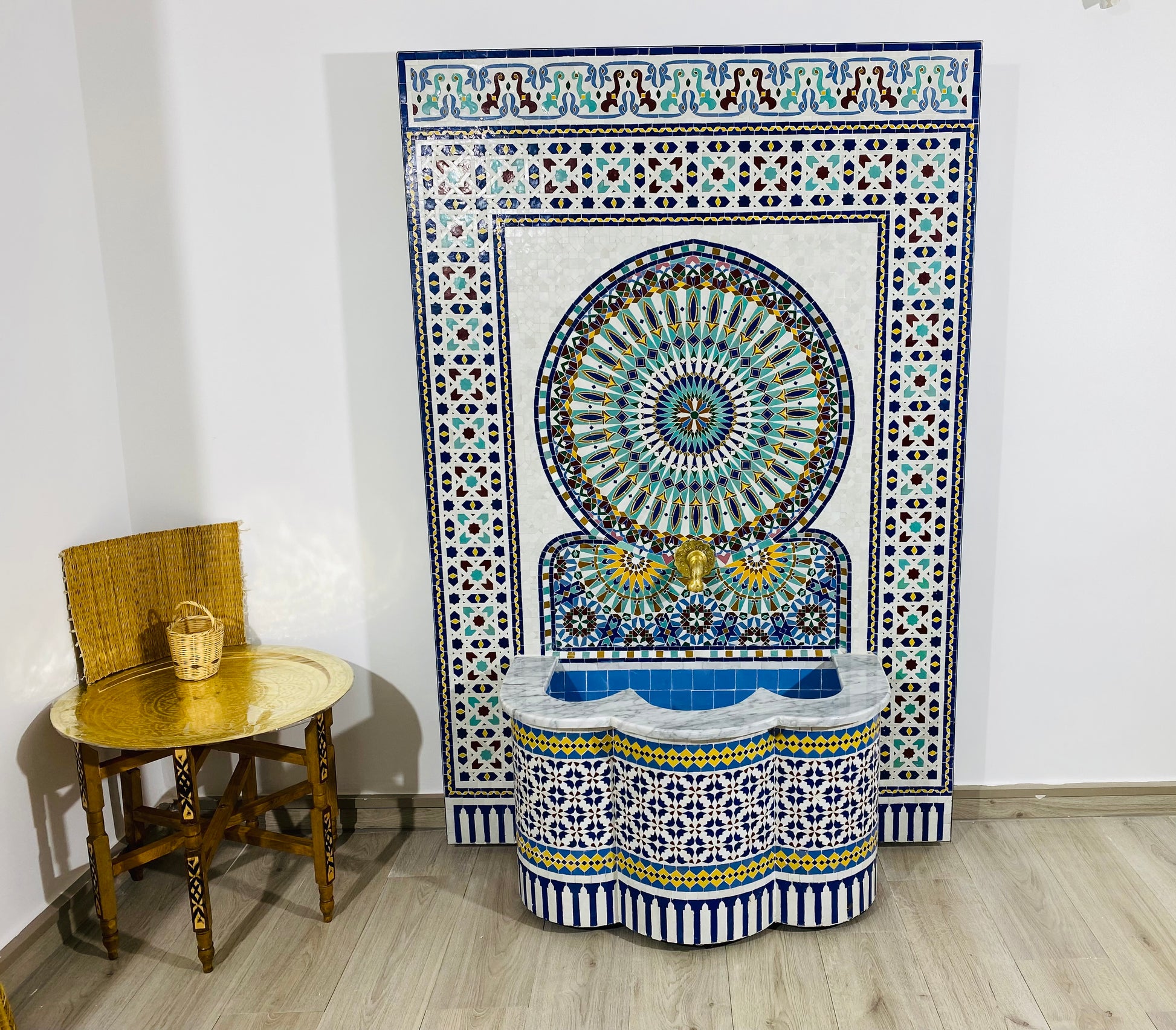 Unique Mosaic Fountain 71"x48" for Outdoor and Indoor Fountain water inside Moroccan big Mosaic Fountain.