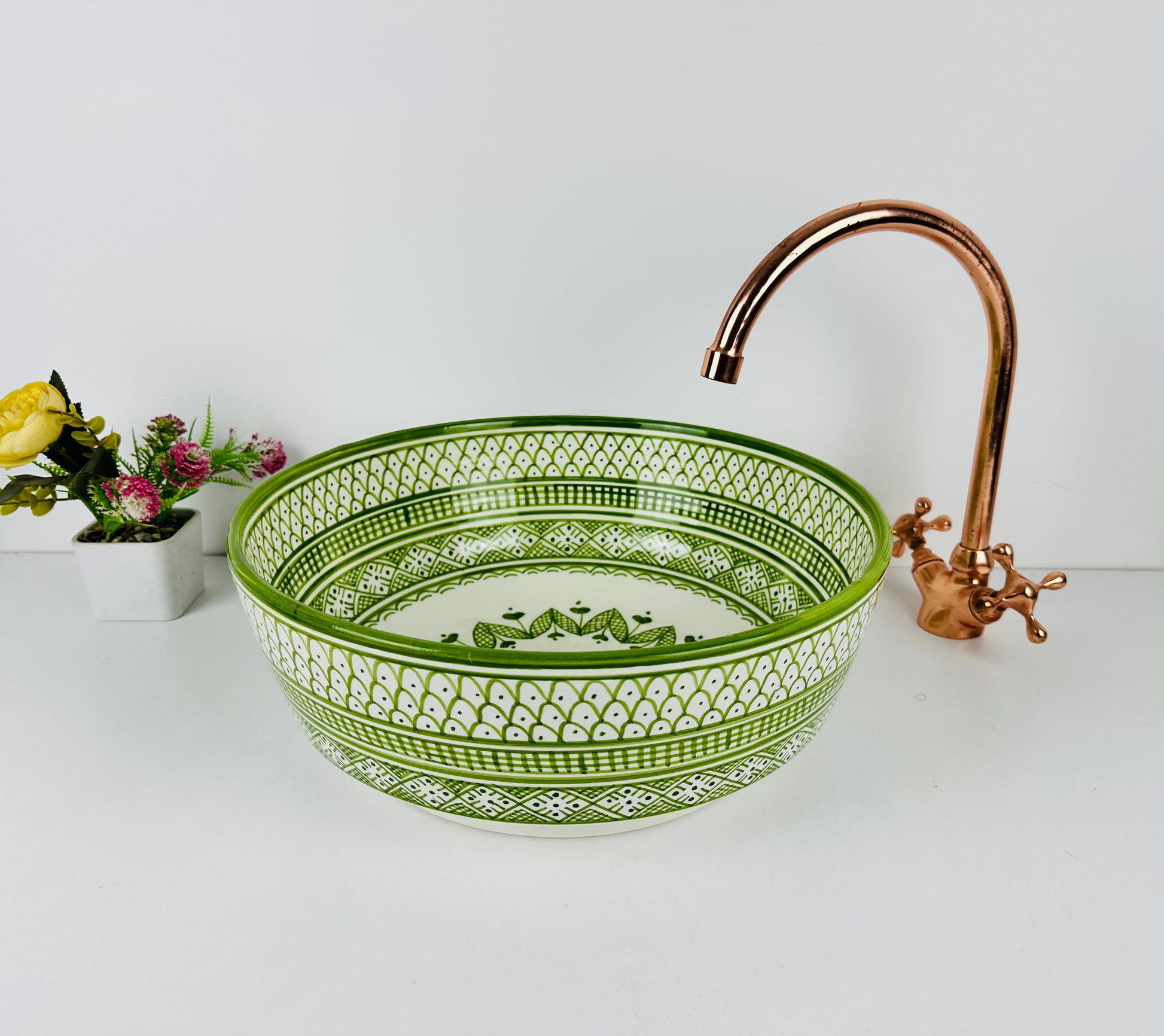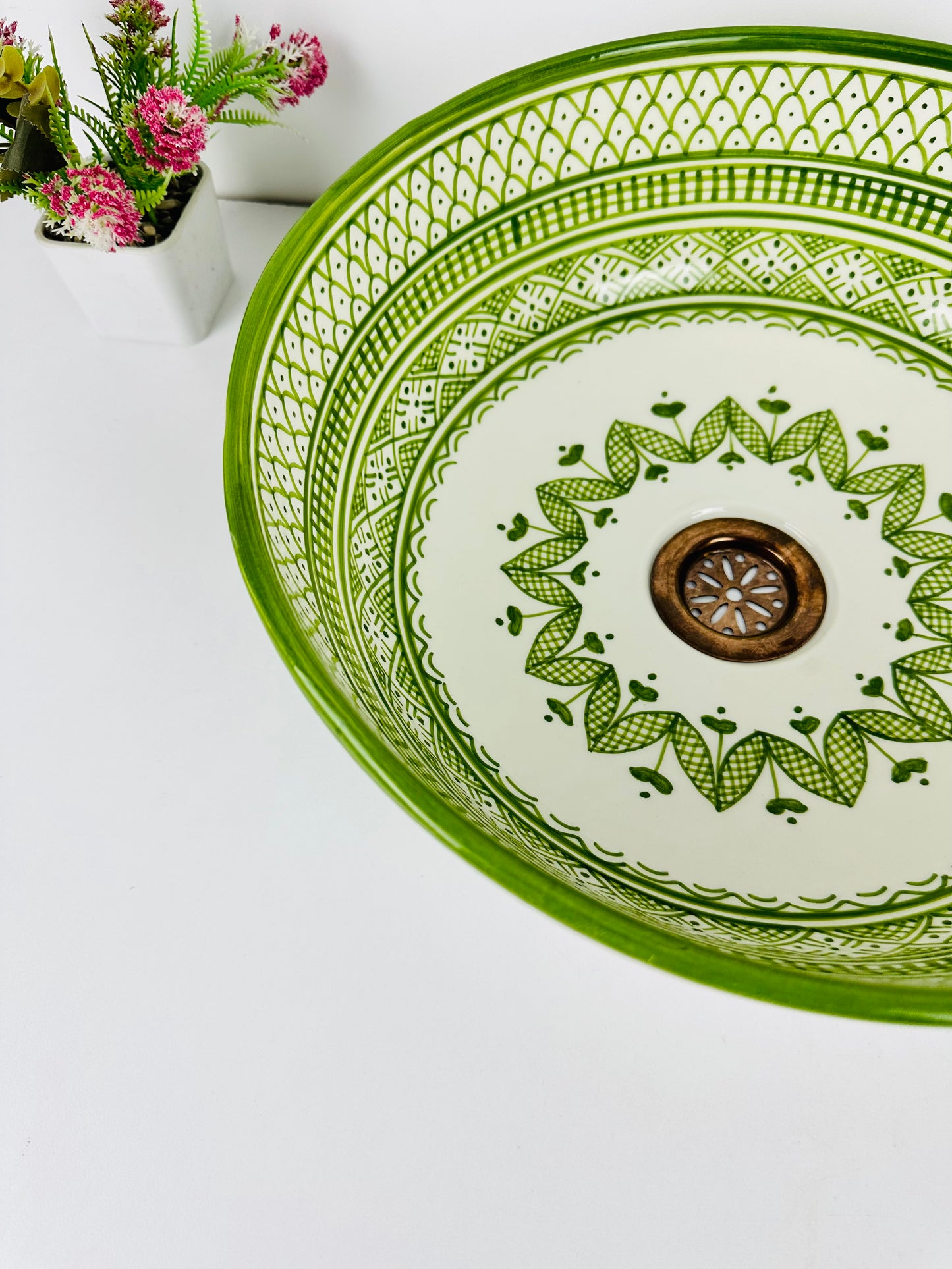 Verdant Charm: Handcrafted Ceramic Sink in Green Beauty