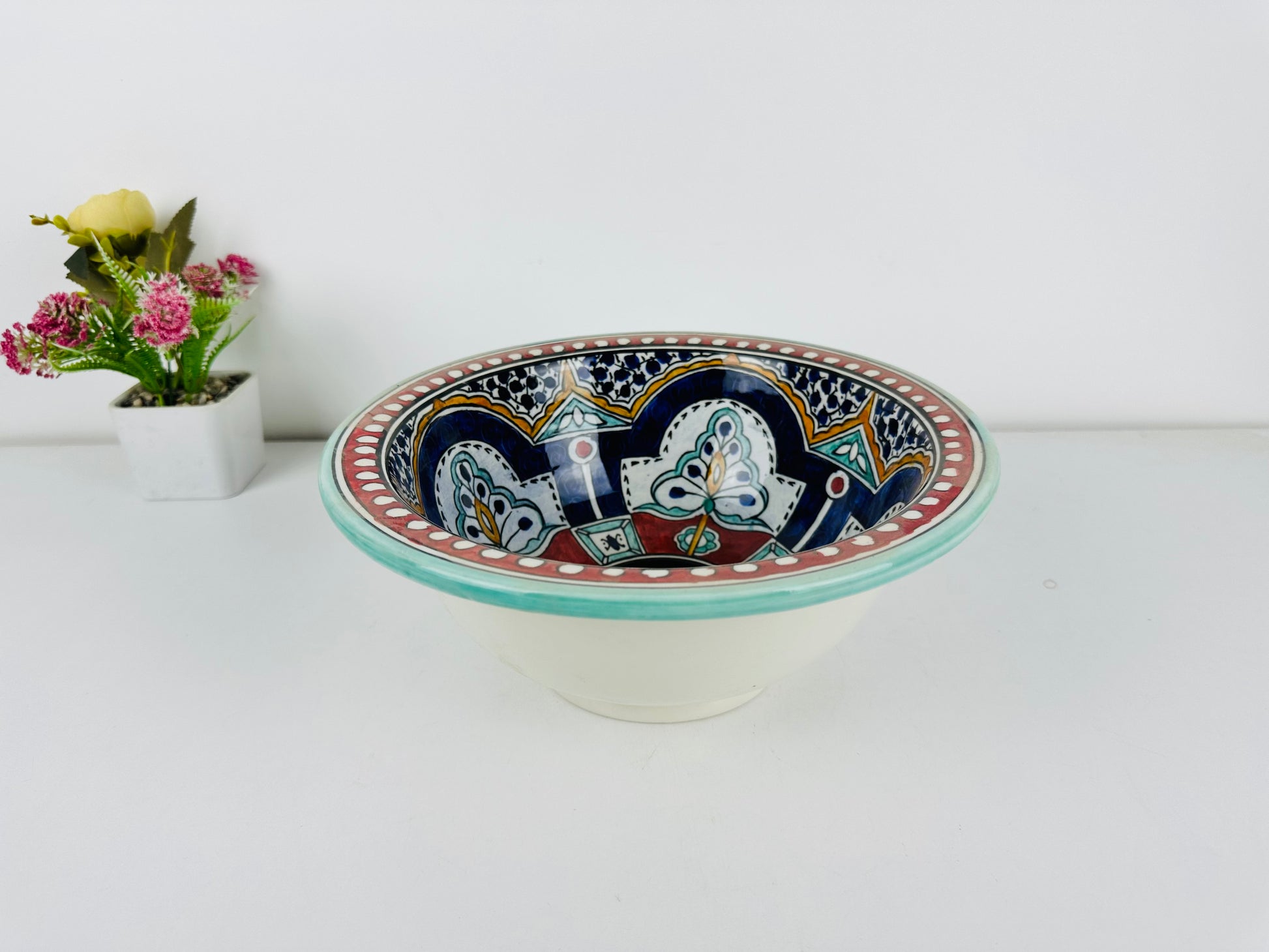 Vibrant Bazaar: Handcrafted Ceramic Sink with Moroccan-Inspired Colorful Design