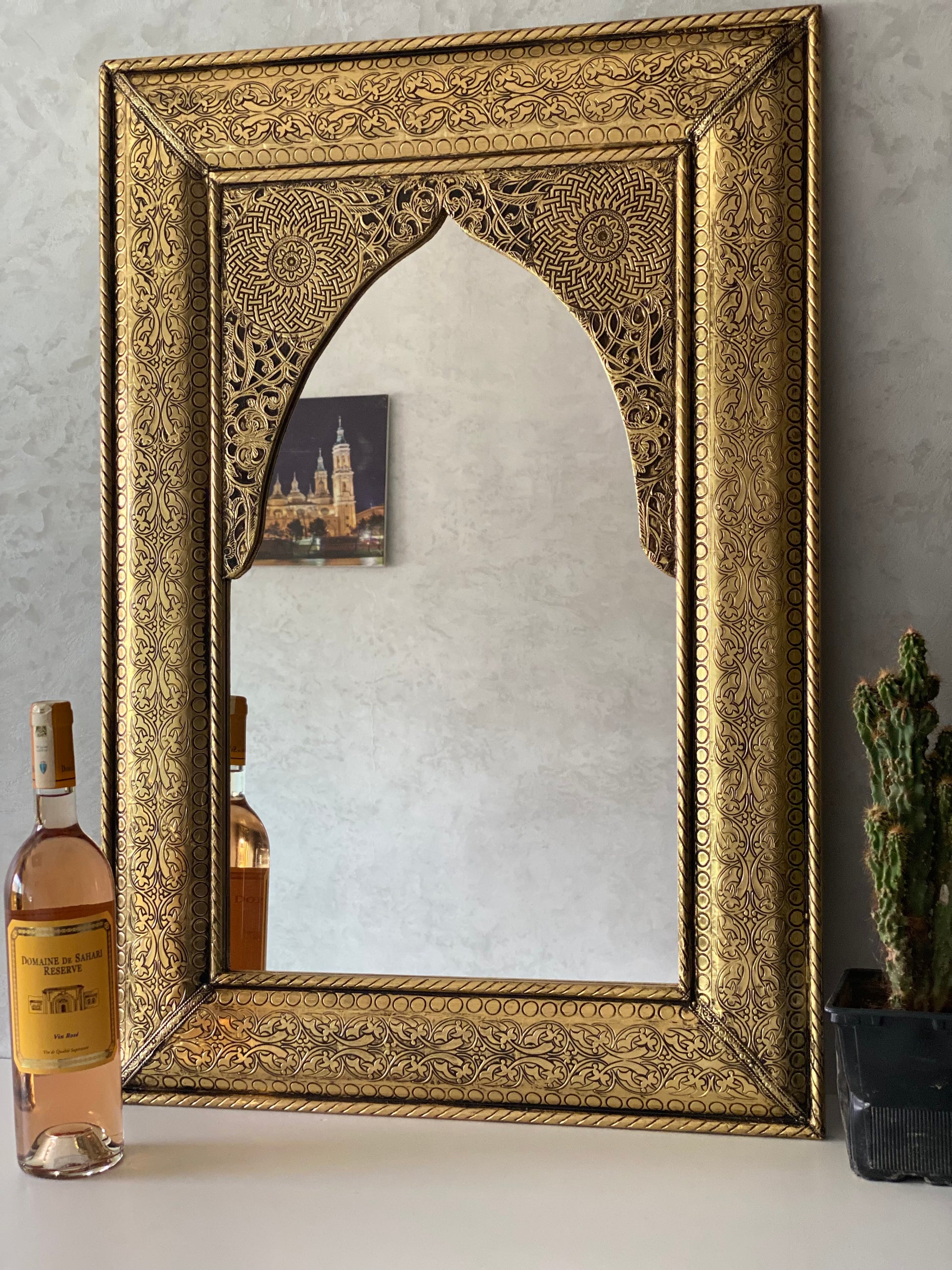 Wall mirror large Gold color handmade engraved Brass